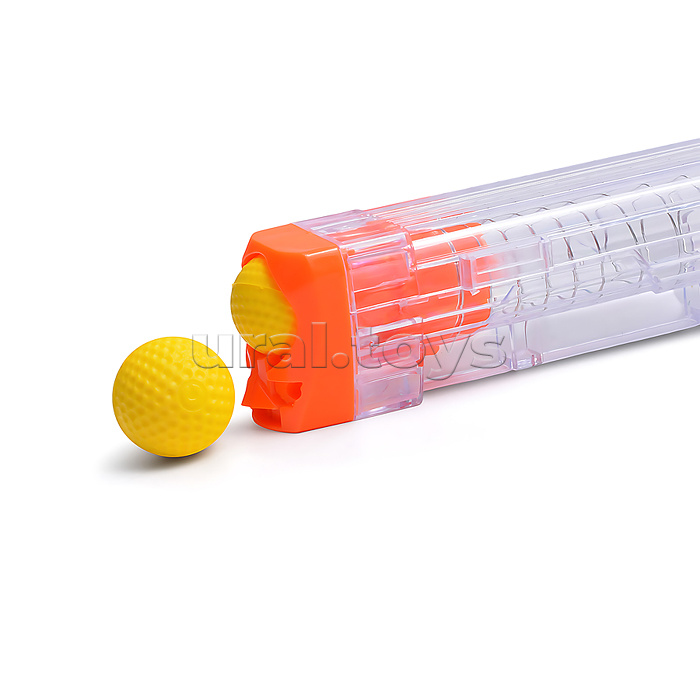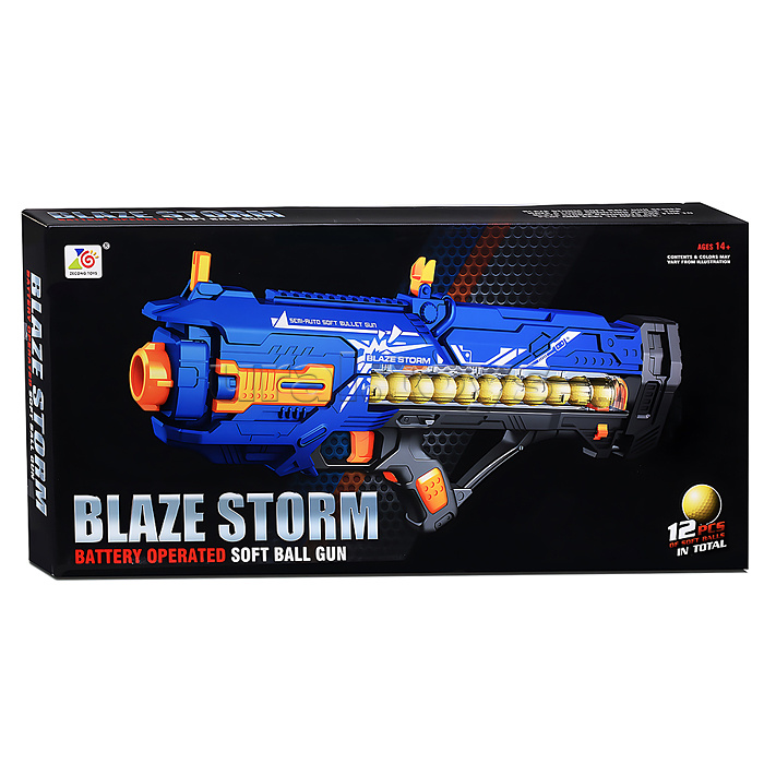 • Размеры игрушки: 54х7.5х23 см. • Работает от 6 батареек "С" (не входят в комплект) • При включении внутри работает моторчик. • При нажатии на спусковой крючок вылетает пуля, после каждого нажатия. • Материал: пластик. • В комплекте 12 мягких шариков. • Соответствует требованиям безопасности продукции. • Для детей от 14 лет.
