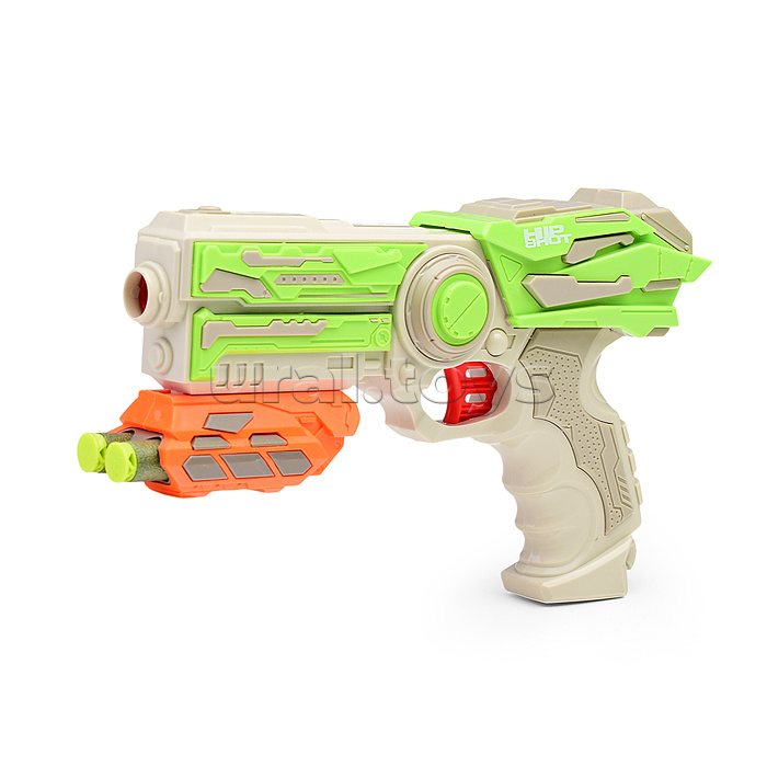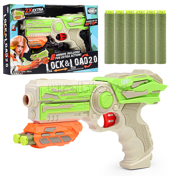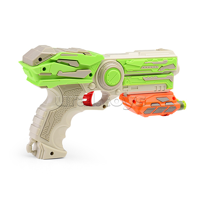 • Размеры игрушки: 22х5х14 см. • Пневматический механизм стрельбы. • Ручная перезарядка. • Материал: пластик. • В комплекте: 6 мягких пуль с резиновым наконечником. • Соответствует требованиям безопасности и стандартам качества продукции. • Для детей от 8 лет.