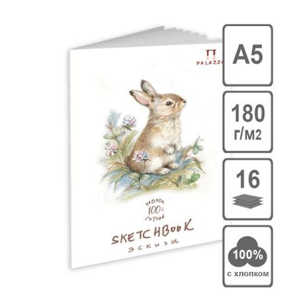 Блокнот для акварели и эскизов "Летний день", 148*210 мм, 16 листов, 180 г/м2, 100% хлопок, белый цвет