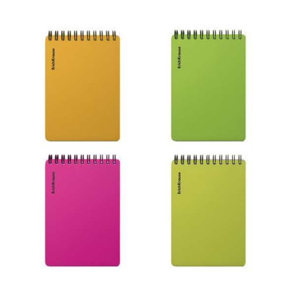 Блокнот формата А7 (76х107 мм). Обложка из высококачественного износостойкого матового пластика с фактурой «песок». В блоке 80 листов в клетку. Бумага офсетная плотностью 60 г/м2. Цвет линовки - синий. Скругленные уголки обложки. Тип скрепления - спираль. Блокноты разного цвета упакованы в термоусадочную пленку по 4 штуки.