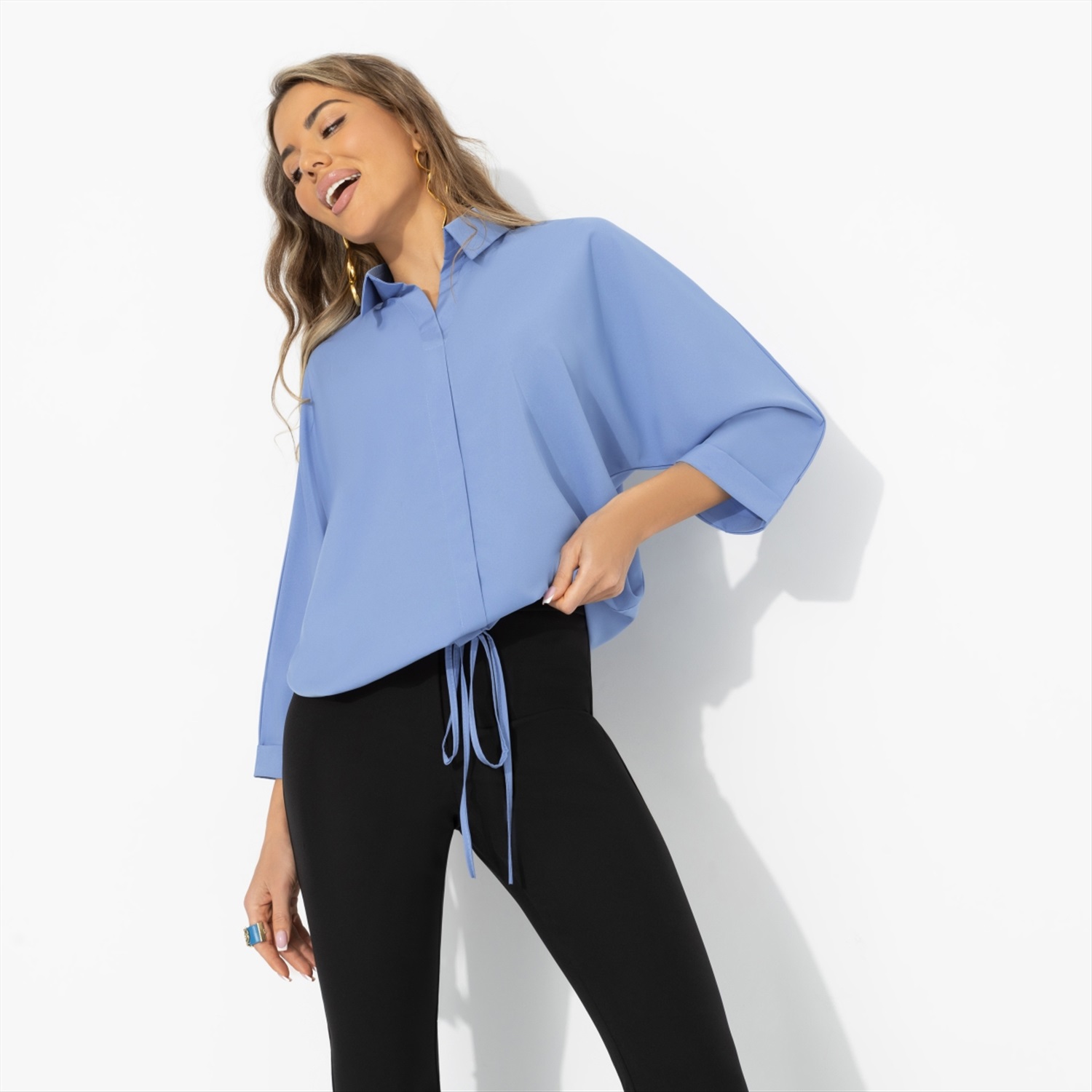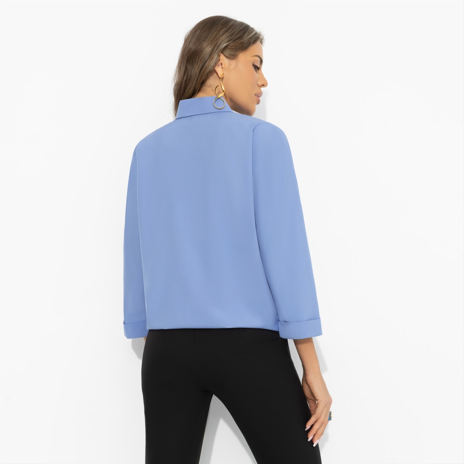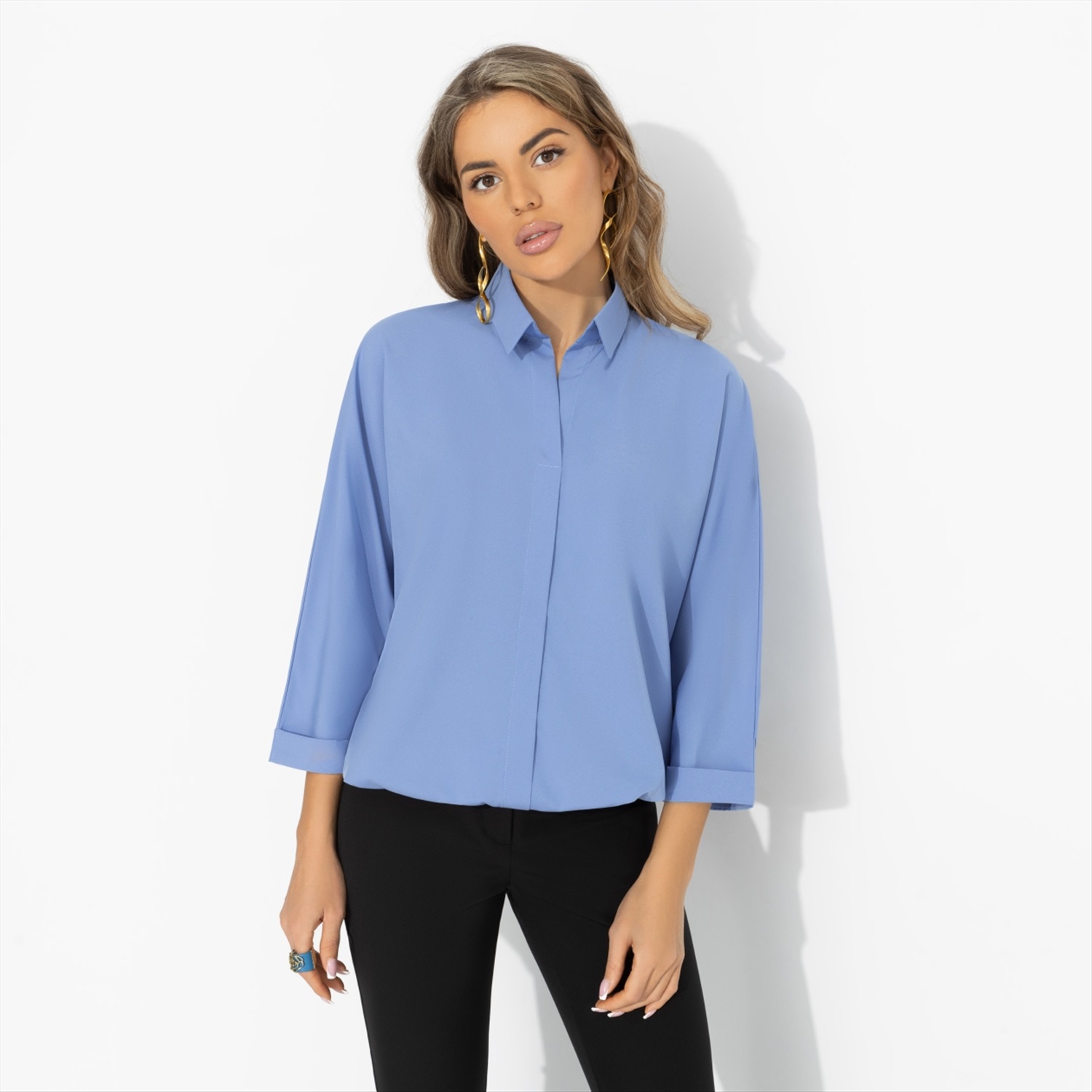 Хотите, чтобы вас слушали? Образы в оттенках голубого помогают расположить к себе – это один из самых «доверительных» цветов в визуальной коммуникации. Он дарит спокойную уверенность: когда не нужно повышать голос, чтобы быть услышанной. Достаточно просто начать говорить. Свободный крой блузы создаёт ощущение воздуха и комфорта в течение дня. Голубой оттенок освежает лицо и легко сочетается с белыми, серыми, тёмно-синими и молочными оттенками. Подходит для дней с плотным графиком и массой дел. Комментарии к товару