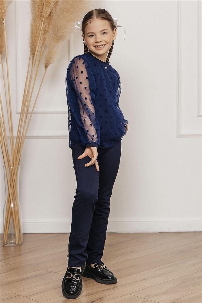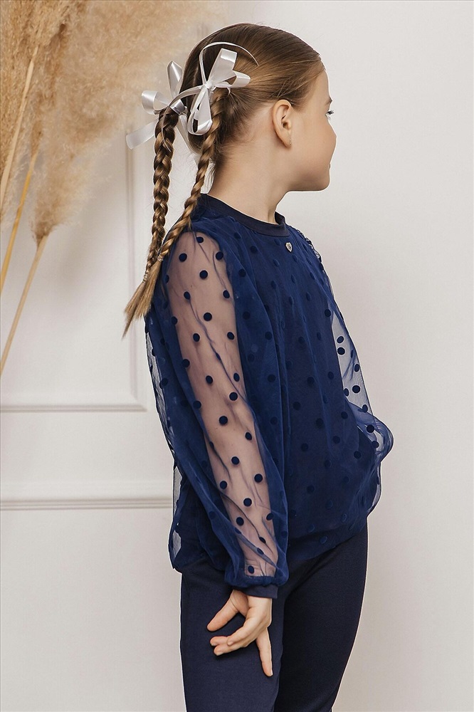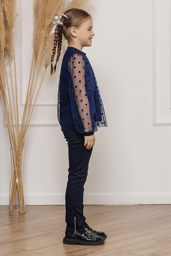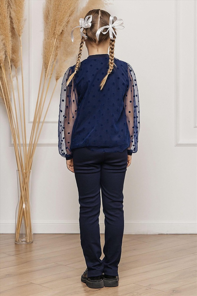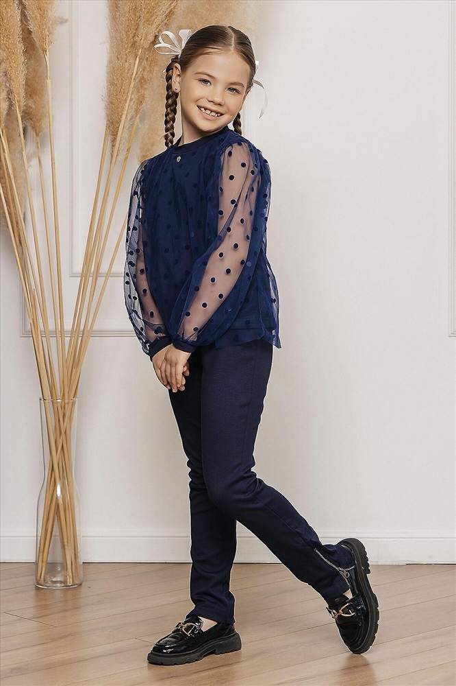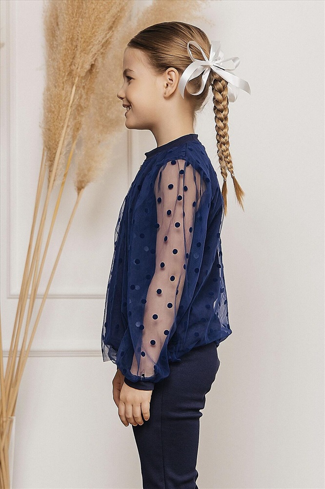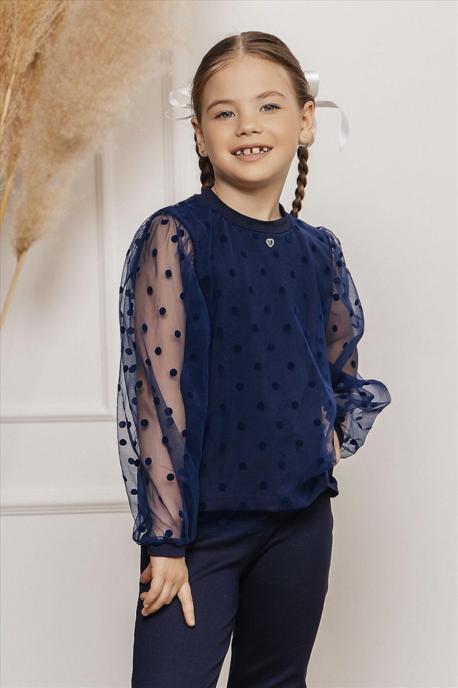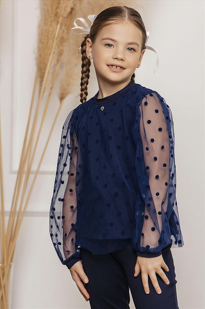 Страна производства: Россия Синяя трикотажная блузка для девочки создает нежный и аккуратный образ для школы и праздников. Широкий втачной рукав из воздушной сетки с эластичным манжетом. Эксклюзивная сборка по окату – добавляет объем и особенный фасон. Усиленная конструкция – перед и спинка полностью продублированы мягкой сеткой флок. Качественный трикотаж – нежный к телу, хорошо держит форму, не деформируется. Универсальный фасон – легко сочетается с юбками, сарафанами и брюками. Идеальный выбор для повседневной носки, школьных занятий и торжественных мероприятий.