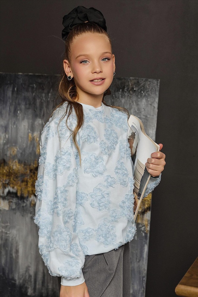 Страна производства: Россия Классическая голубая блузка для девочки в нежном голубом оттенке создает аккуратный и свежий образ, идеально подходит для школы и праздников. Удобный крой реглан с длинными рукавами на манжетах – обеспечивает свободу движений и опрятный вид. Качественный трикотаж из супрема – мягкий, приятный к телу, хорошо держит форму. Усиленная конструкция – перед и рукава полностью продублированы сеткой с изящной вышивкой. Аккуратная посадка – блузка не перекручивается и не теряет форму в течение дня. Универсальный фасон легко сочетается с юбками, сарафанами и брюками. Идеальный выбор для школьной формы, торжественных мероприятий и повседневной носки.