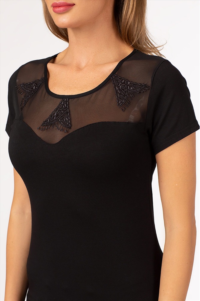 Производитель: BON-AR ID товара: 93071 Состав: 45% Модал, 40% Эластан, 15% Лайкра Сезон: Демисезон Длина: Средняя Фасон: Прямой Рукав: Короткий Вид застежки: Нет Подкладка: Нет Вырез горловины: Каре Основная ткань: Модал Стиль: Повседневный Страна бренда: Турция Страна производства: Турция