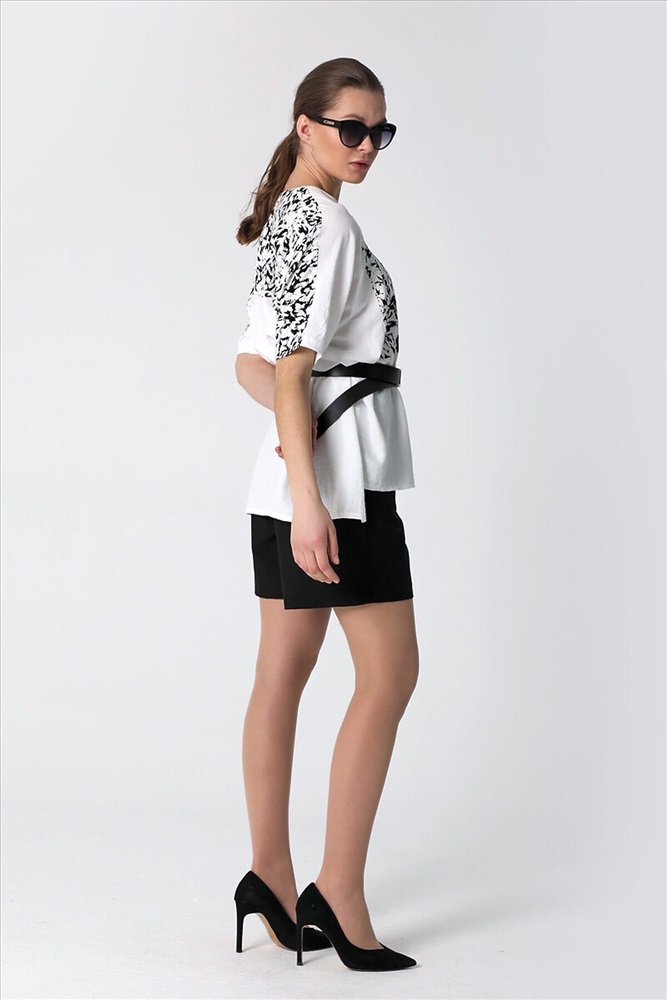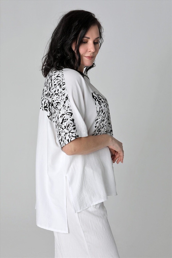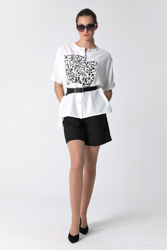 ID товара: 1105789 Состав: 100% Полиэстер Сезон: Весна/Лето Длина: Средняя Фасон: Свободный Рукав: короткие Вид застежки: Пуговицы Вырез горловины: Округлый Рисунок: цветочный Декоративные элементы: Принт Основная ткань: Полиэстер Стиль: повседневный Уход: бережная стирка при 30 градусах Страна бренда: Россия Страна производства: Россия Блузка с короткими рукавами. Комментарии к товару