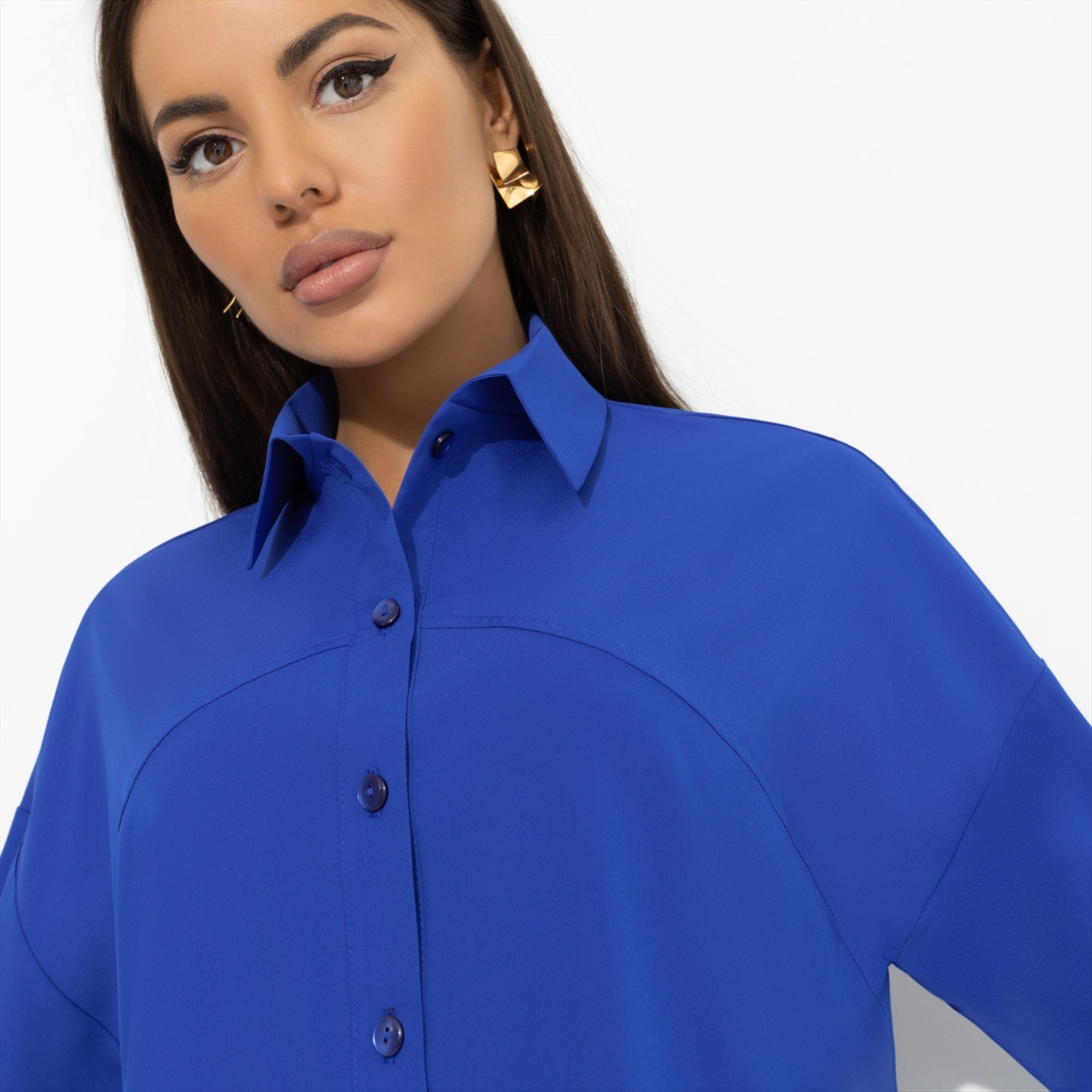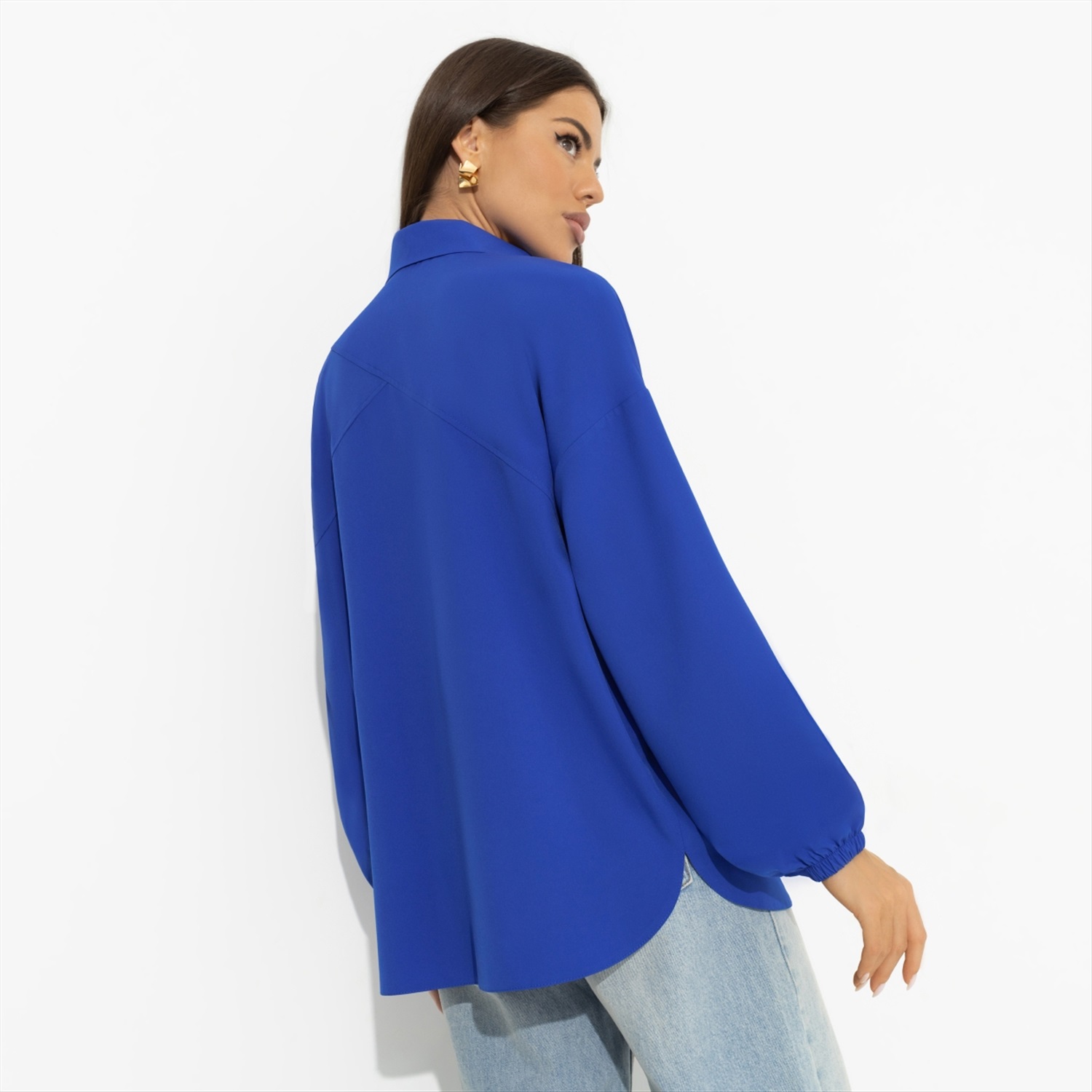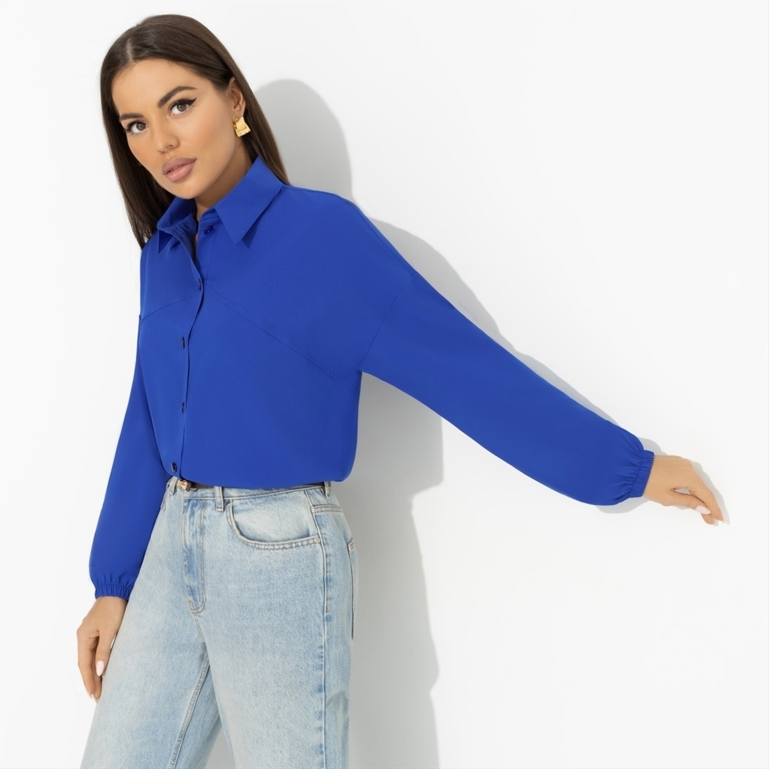 Мечты о море станут реальностью как только ты сместишь фокус внимания. Блуза CHARUTTI в цвете Средиземного моря подарит вам безмятежность в повседневным делах и станет fashion-магнитом для скорого путешествия. Блуза свободного кроя. Хорошо смотрится в заправленном виде и навыпуск. Изделие застегивается на пуговицы в тон ткани. Рукава дополнены резинками.