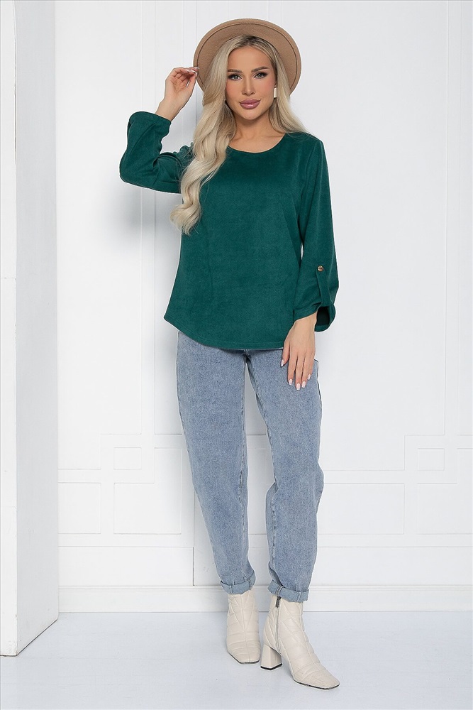Блузка прямого кроя свободного силуэта, выполненная из приятной к телу мягкой ткани будет хорошо сочетаться с вашим деловым или повседневным гардеробом. Рукав втачной, три четверти, низ рукава украшен декоративной патой.