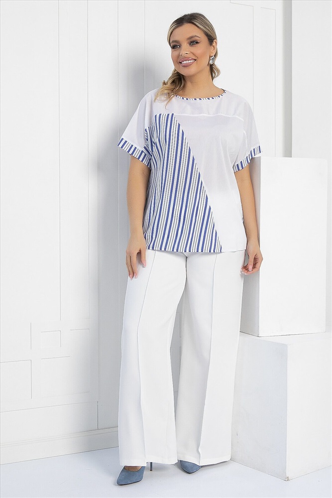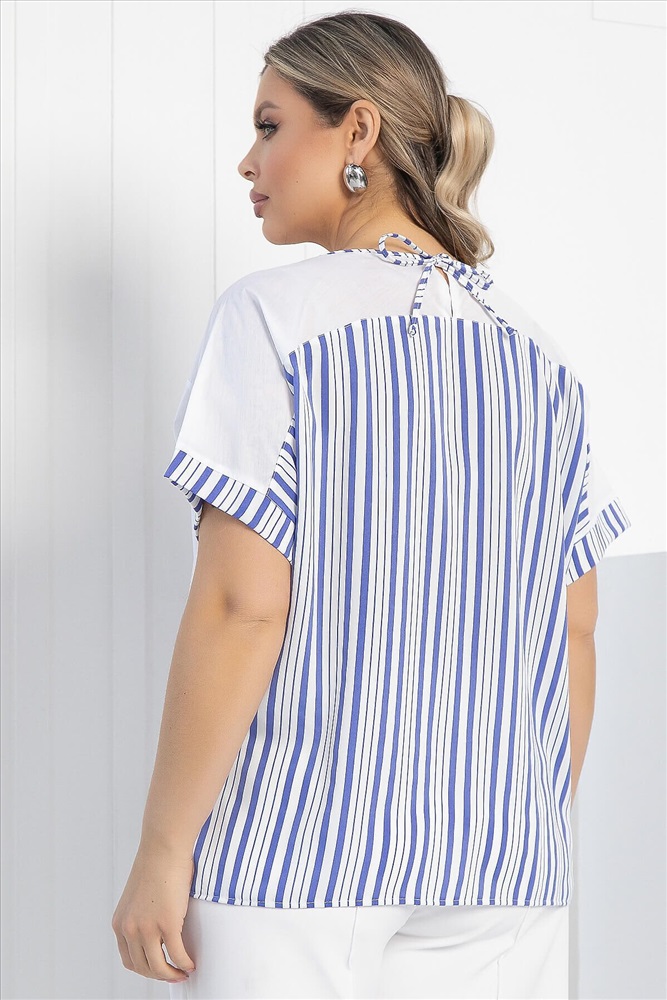 Блуза свободного кроя — это идеальный выбор для создания стильного и непринужденного образа! Спущенные плечи и разрезной перед добавляют ей изюминку, которая делает её уникальной. Округлая горловина плавно переходит в завязки на спине, что придаёт блузе оригинальный и женственный вид. Эта модель идеально сочетается с джинсами или юбками, что делает её универсальным вариантом для повседневной носки.