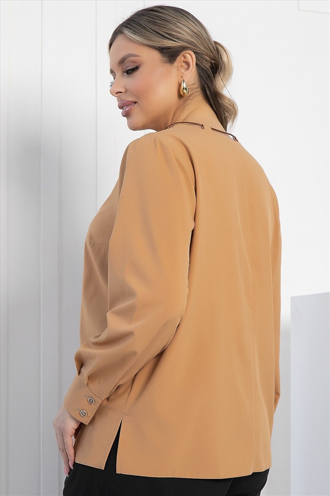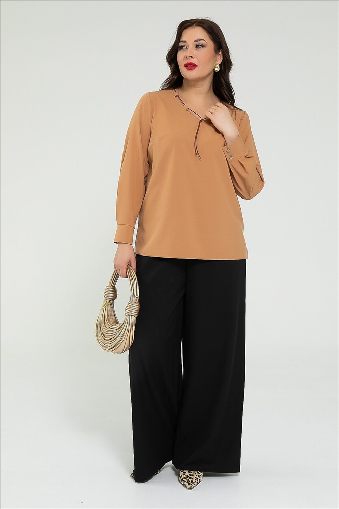 ID товара: 1092308 Состав: 95% Полиэстер, 5% Эластан Сезон: Демисезон Длина: Средняя Фасон: Свободный Рукав: длинные Вырез горловины: V-образный Основная ткань: Полиэстер Стиль: классический Страна бренда: Россия Страна производства: Россия Артикул: Б12795-15М. Тип ткани: синтетический. Состав: 95% полиэстер, 5% эластан. Материал: блузочный "Ниагара". Цвет: песочный. Принт: отсутствует. Вид застежки: без застёжки. Карманы: отсутствуют. Силуэт: свободный. Подкладка: отсутствует. Декоративные элементы: петельки на груди с замшевым шнурком. Длина по спинке от верхней точки плеча: 50/ 68 см, 52/ 69 см, 54/ 70 см, 56/ 71 см. Размер изделия на модели: 52 Рост модели: 170 см. Блузка отснята с брюками арт. Б10952 Оригинальная лёгкая блуза свободного кроя в актуальных оттенках этого сезона. Модель имеет длинный рукав на широком манжете с двумя пуговицами. На груди блуза декорирована петельками из родной ткани, в которые продет замшевый шнурок. По желанию вы можете использовать свое любимое украшение, например цепочку с кулоном. Свободный силуэт изделия с разрезами по бокам подходит абсолютно для любой фигуры. Такая блуза актуальна как для офиса, праздничных мероприятий, так и для романтических встреч. Нежная и воздушная блуза станет отличным дополнением до сих пор актуальных брюк палаццо. Уход за изделием: ручная стирка до 30 градусов; нельзя отбеливать; отжим запрещён; гладить при t не более 110 С; гладить с изнанки. Внимание! Рекомендуем ориентироваться на размерную сетку и выбирать свой привычный размер, согласно размерной таблице. *Допуск отклонения длины при массовом производстве 1-3 см является нормой. Комментарии к товару