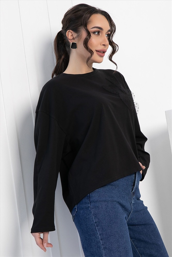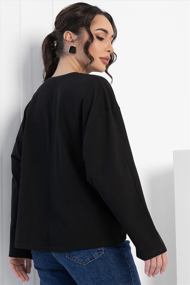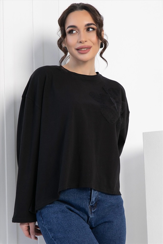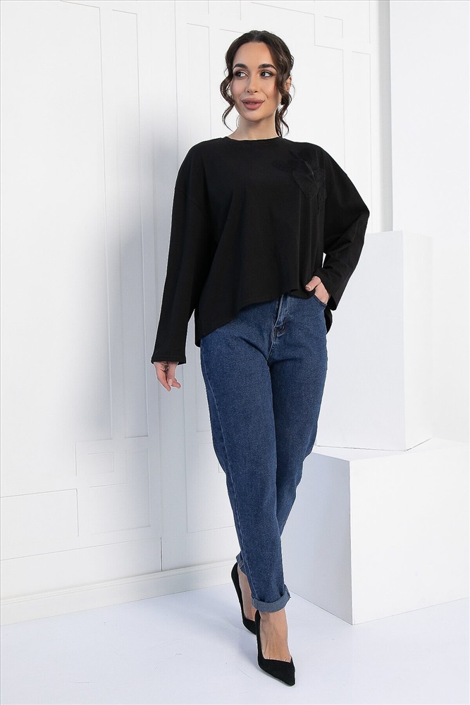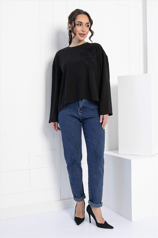 ID товара: 1094095 Состав: 80% Полиэстер, 15% Вискоза, 5% Эластан Сезон: Демисезон Длина: Средняя Фасон: Свободный Рукав: длинные Вырез горловины: Округлый Основная ткань: Полиэстер Стиль: классический Страна бренда: Россия Страна производства: Россия Артикул: Б12906-39М. Тип ткани: смесовый. Состав: 80% полиэстер, 15% вискоза, 5% эластан. Материал: трикотаж. Цвет: чёрный. Принт: отсутствует. Вид застежки: без застёжки. Силуэт: оверсайз. Карманы: отсутствуют. Подкладка: отсутствует. Декоративные элементы: сердца из сетчатой ткани на левой стороне груди. Длина по переду (ассиметричный крой): One size (44-52) - 57 см. Длина по спинке от верхней точки плеча: One size (44-52) - 62 см. Рост модели: 167 см. Блузка отснята с джинсами арт. Б11176 Модный и удобный джемпер свободного кроя — это то, что нужно для создания стильного и комфортного образа! Его свободный крой и спущенная пройма обеспечивают идеальную посадку и свободу движений. Асимметричный низ добавляет оригинальности, а аппликация в виде сердец придаёт джемперу игривый и романтичный вид. Легко сочетается с джинсами, леггинсами или юбками, позволяя создавать разнообразные образы для повседневной жизни. Уход за изделием: ручная стирка до 30 градусов; нельзя отбеливать; отжим запрещён; гладить при t не более 110 С; гладить с изнанки. Внимание! Рекомендуем ориентироваться на размерную сетку и выбирать свой привычный размер, согласно размерной таблице. *Допуск отклонения длины при массовом производстве 1-3 см является нормой. Комментарии к товару