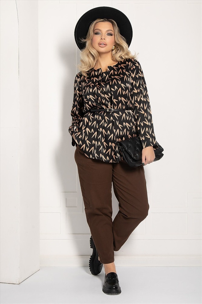 ID товара: 1094480 Состав: 95% Полиэстер, 5% Спандекс Сезон: Демисезон Длина: Средняя Фасон: Свободный Рукав: длинные Вырез горловины: Фигурный Рисунок: Узор Декоративные элементы: Принт Основная ткань: Полиэстер Стиль: классический Страна бренда: Россия Страна производства: Россия Артикул: Б12710-37. Тип ткани: синтетический. Состав: 95% полиэстер, 5% спандекс. Материал: шелк "Армани". Цвет: чёрный. Принт: абстракция. Вид застежки: без застёжки. Силуэт: свободный. Карманы: отсутствуют. Подкладка: отсутствует. Декоративные элементы: ремень в комплекте. Длина по спинке от верхней точки плеча: 48-50/ 70 см, 52-56/ 72 см. Размер изделия на модели: 52 Рост модели: 170 см. Блузка отснята с джинсами арт. Б12712-12 Блузка из шелка «Армани» — идеальный выбор для стильных и уверенных в себе женщин. Эта элегантная блузка сочетает в себе комфорт и утонченность, подчеркивая вашу индивидуальность. Изготовленная из высококачественного шелка, она приятно облегает фигуру и создает ощущение невесомости. Такой материал не только выглядит роскошно, но и обеспечивает отличную воздухопроницаемость, делая ее идеальной для носки в любое время года. Интересный крой и лаконичный дизайн позволяют легко комбинировать эту блузку с различными предметами гардероба. Она отлично смотрится как с юбкой, так и с брюками, создавая стильный образ как для повседневной жизни, так и для особых случаев. Элегантный цвет и текстура делают ее универсальной вещью, которая дополнит любую коллекцию одежды. Эта шелковая блузка — отличный выбор для офисной обстановки, вечерних выходов или романтических встреч. Вы будете выглядеть безупречно и ощущать себя комфортно в любой ситуации. Блузка легко стирается и не теряет своего первоначального вида, что делает ее долговечной частью вашего гардероба. Ремень идет в комплекте. Уход за изделием: ручная стирка до 30 градусов; нельзя отбеливать; отжим запрещён; гладить при t не более 110 С; гладить с изнанки. Внимание! Рекомендуем ориентироваться на размерную сетку и выбирать свой привычный размер, согласно размерной таблице. *Допуск отклонения длины при массовом производстве 1-3 см является нормой. Комментарии к товару