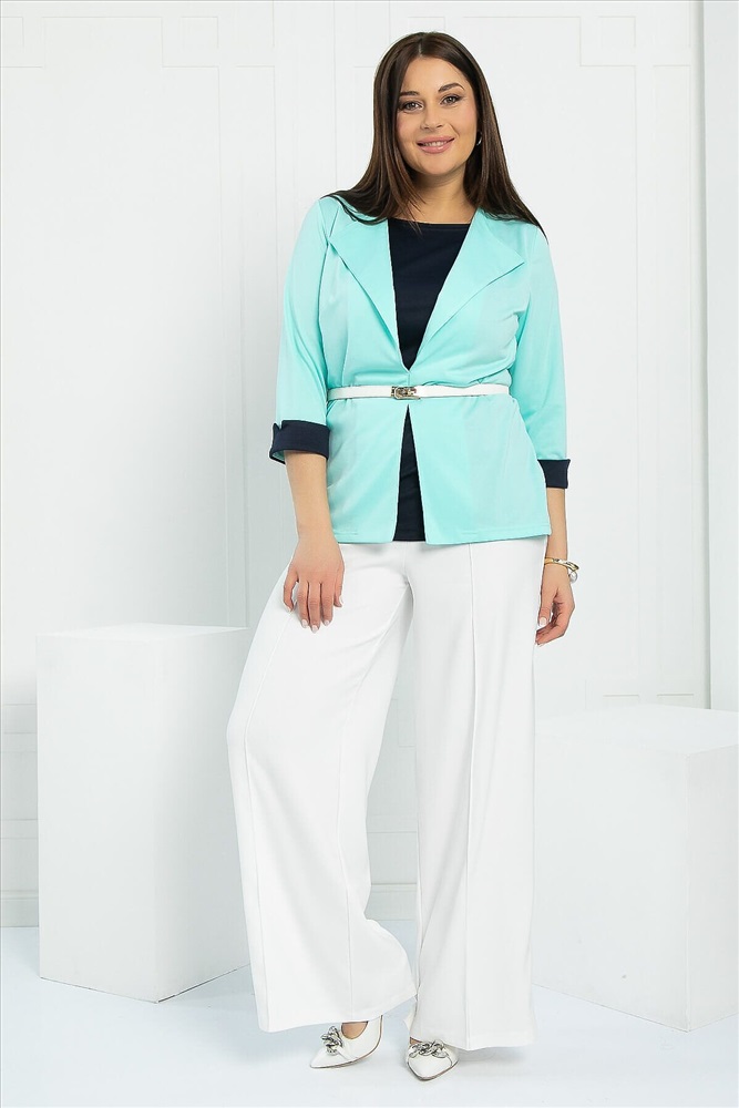 ID товара: 1099594 Состав: 95% Полиэстер, 5% Эластан Сезон: Весна/Лето Длина: Средняя Фасон: Полуприлегающий Рукав: 3/4 Вырез горловины: Фигурный Основная ткань: Полиэстер Стиль: классический Страна бренда: Россия Страна производства: Россия Артикул: Б12983-4М. Тип ткани: синтетический. Состав: 95% полиэстер, 5% эластан. Материал: трикотаж. Цвет: мятный. Принт: отсутствует. Вид застежки: без застёжки. Силуэт: полуприлегающий. Карманы: отсутствуют. Подкладка: отсутствует. Декоративные элементы: ремень не входит в комплект. Длина по спинке от верхней точки плеча: 50-52/ 66 см, 54-56/ 67 см. Размер изделия на модели: 52 Рост модели: 173 см. Блузка отснята с брюками арт.Б12685-13 Блуза выполнена из ткани двух цветов, что делает её уникальной и оригинальной! Её верхняя часть с отложными лацканами придаёт образу изысканность и современность. Втачные рукава на манжете обеспечивают удобство и комфорт. Эта блуза станет отличным выбором как для офисного стиля, так и для повседневных выходов. Она поможет вам всегда выглядеть стильно и уверенно! Уход за изделием: ручная стирка до 30 градусов; нельзя отбеливать; отжим запрещён; гладить при t не более 110 С; гладить с изнанки. Внимание! Рекомендуем ориентироваться на размерную сетку и выбирать свой привычный размер, согласно размерной таблице. *Допуск отклонения длины при массовом производстве 1-3 см является нормой. Комментарии к товару
