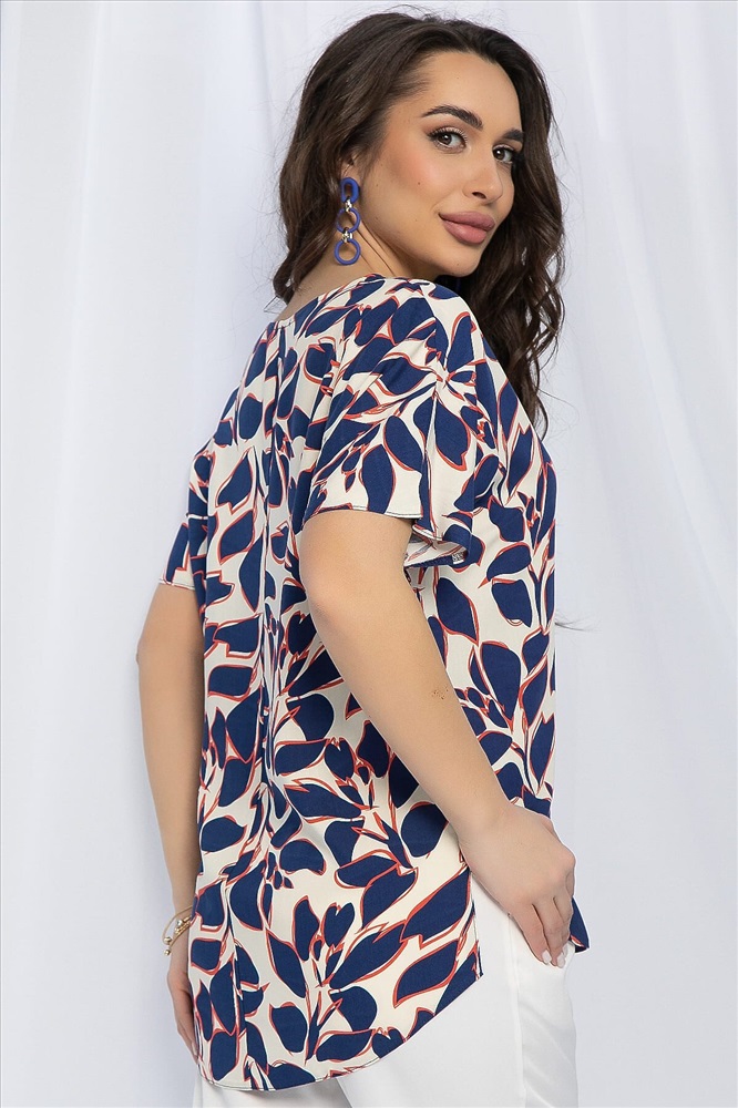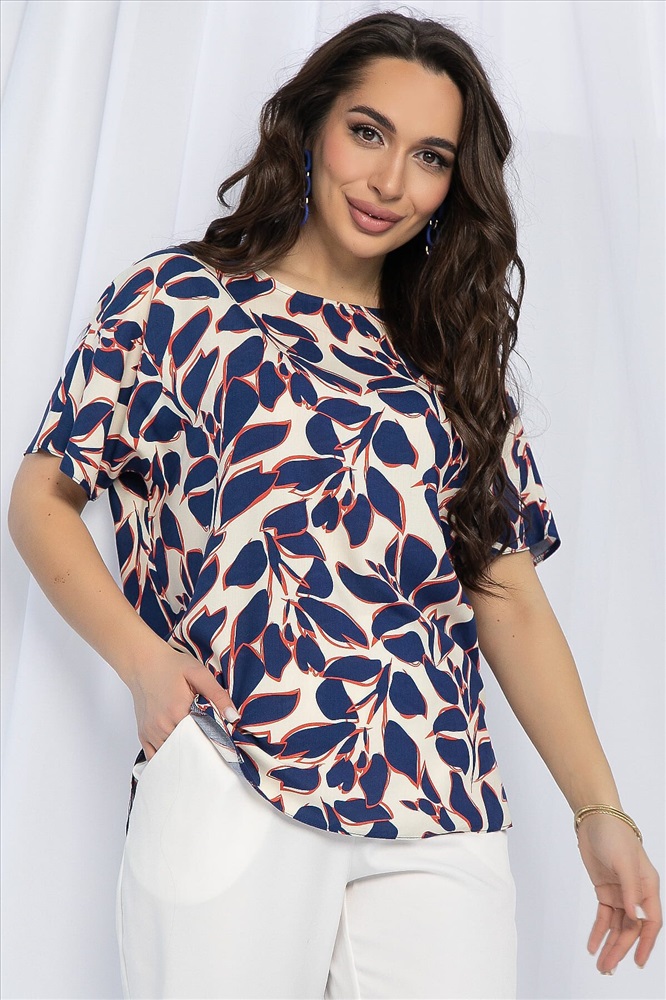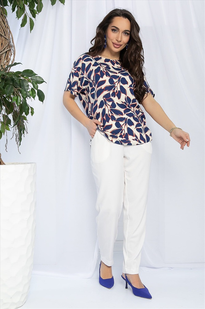ID товара: 1105385 Состав: 100% Вискоза Сезон: Весна/Лето Длина: Средняя Фасон: Свободный Рукав: короткие Вырез горловины: Округлый Рисунок: растительный Декоративные элементы: Принт Основная ткань: Вискоза Стиль: повседневный Страна бренда: Россия Страна производства: Россия Состав: 100% вискоза. Материал: штапель. Цвет: бежево-синий. Принт: листья. Силуэт: свободный. Карманы: отсутствуют. Подкладка: отсутствует. Вид застежки: отсутствует. Декоративные элементы: отсутствуют. Длина по переду (ассиметричный крой): 44/ 65 см, 46/ 66 см, 48/ 67 см, 50/ 68 см, 52/ 69 см, 54/ 70 см, 56/ 71 см. Длина по спинке от верхней точки плеча: 44/ 70 см, 46/ 71 см, 48/ 72 см, 50/ 73 см, 52/ 74 см, 54/ 75 см, 56/ 76 см. Блузка с коротким рукавом из плотного плательного штапеля — это отличный выбор для создания модного и изысканного образа! Спущенные рукава и разрезы по бокам придают этой блузке лёгкость и удобство, что делает её идеальным вариантом для жарких дней. Она прекрасно сочетается как с юбкой, так и с брюками, позволяя вам создавать разнообразные комплекты для любого случая. Добавьте эту универсальную блузку в свой гардероб и наслаждайтесь летними прогулками с уверенностью! Уход за изделием: ручная стирка до 30 градусов; нельзя отбеливать; отжим запрещён; гладить при t не более 110 С; гладить с изнанки. Внимание! Рекомендуем ориентироваться на размерную сетку и выбирать свой привычный размер, согласно размерной таблице. *Допуск отклонения длины при массовом производстве 1-3 см является нормой. Комментарии к товару