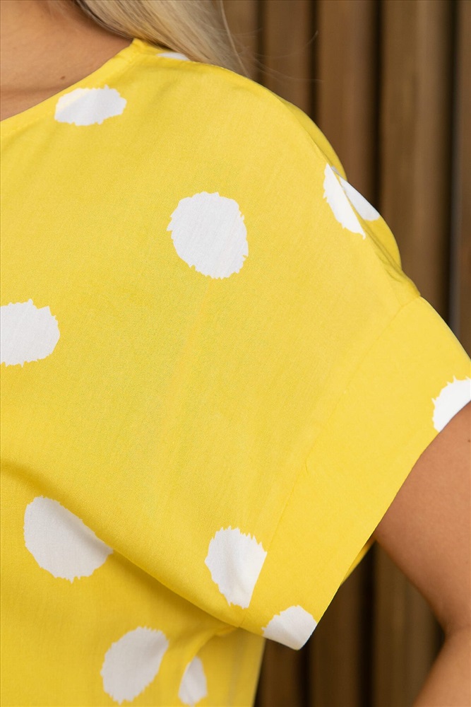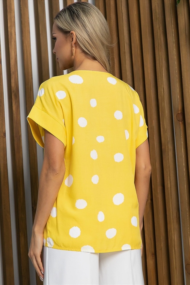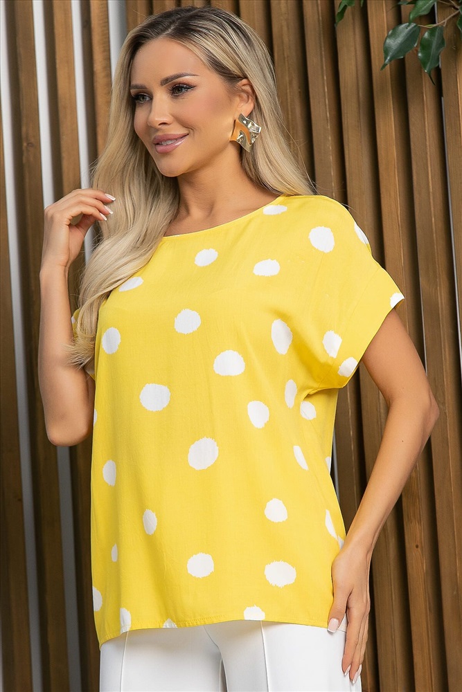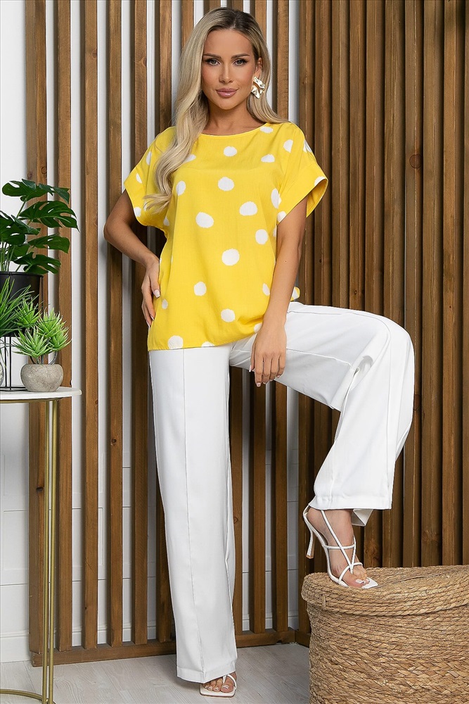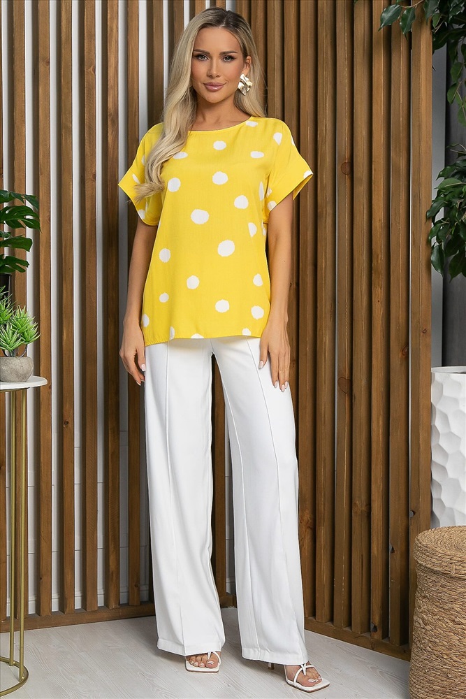ID товара: 1105717 Состав: 100% Вискоза Сезон: Весна/Лето Длина: Средняя Фасон: А-силуэт Рукав: короткие Вырез горловины: Округлый Рисунок: Горох Декоративные элементы: Принт Основная ткань: Вискоза Страна бренда: Россия Страна производства: Россия Состав: 100% вискоза. Материал: штапель. Цвет: жёлтый. Принт: горох. Силуэт: А-силуэт. Карманы: отсутствуют. Подкладка: отсутствует. Вид застежки: без застёжки. Декоративные элементы: отсутствуют. Длина: 44/ 63 см, 46/ 64 см, 48/ 65 см, 50-52/ 66 см. Футболка отснята с брюками арт.Б12685-13 Футболка с принтом в горошек — это must-have для любого современного гардероба! Она идеально подходит для создания повседневных образов и легко комбинируется с самыми разнообразными вещами, позволяя создавать стильные ансамбли. Эта футболка обладает свободным кроем, спущенными плечами и манжетами, что придаёт ей непринуждённый вид. Уход за изделием: ручная стирка до 30 градусов; нельзя отбеливать; отжим запрещён; гладить при t не более 110 С; гладить с изнанки. Внимание! Рекомендуем ориентироваться на размерную сетку и выбирать свой привычный размер, согласно размерной таблице. *Допуск отклонения длины при массовом производстве 1-3 см является нормой. Комментарии к товару