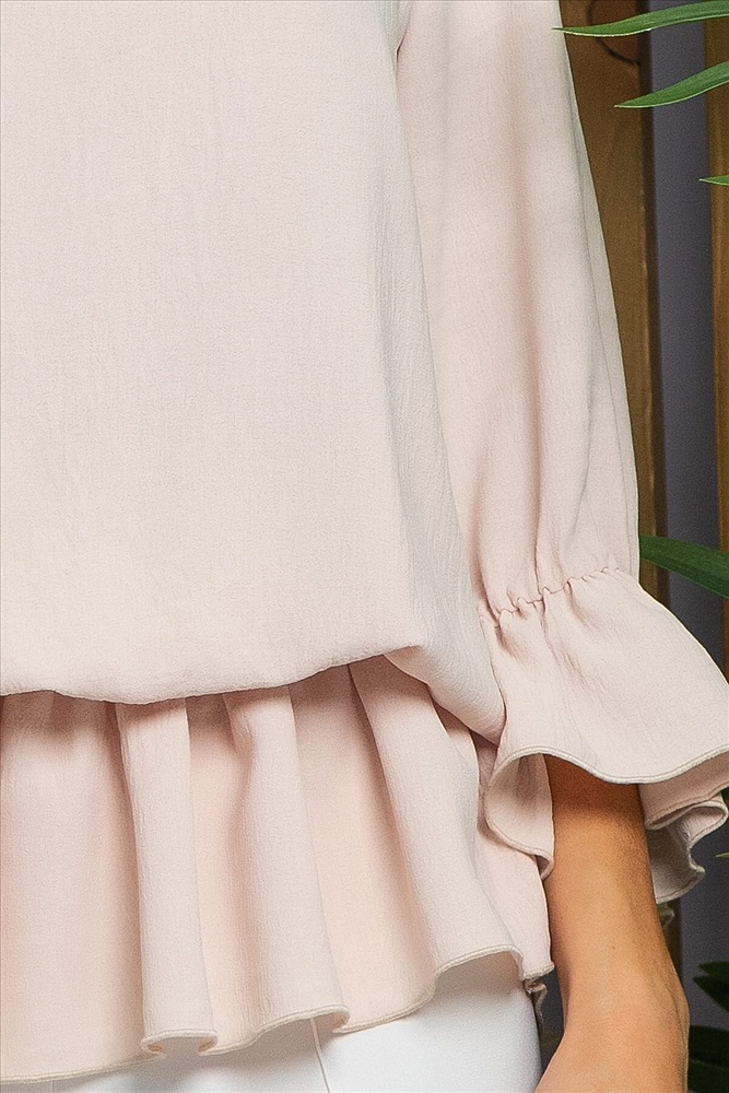 ID товара: 1118035 Состав: 80% Вискоза, 20% Полиэстер Сезон: Весна/Лето Длина: Средняя Фасон: Свободный Рукав: 3/4 Вырез горловины: Округлый Основная ткань: Вискоза Стиль: классический Страна бренда: Россия Страна производства: Россия Состав: 80% вискоза, 20% полиэстер. Материал: плательно-блузочный. Цвет: бежевый. Принт: отсутствует. Силуэт: свободный. Карманы: отсутствуют. Подкладка: отсутствует. Вид застежки: без застёжки. Декоративные элементы: отсутствуют. Длина: 46-48/ 71 см, 50-52/ 72 см, 54-56/ 73 см. Блузка отснята с брюками арт.Б12685-13 Однотонная бежевая блуза — это прекрасная основа для создания разнообразных образов. Рукав три четверти, по низу украшен воланом. Само изделие также украшено по низу воланом, что придает образу легкости и воздушности. Горловина отработана резинкой, это позволяет спустить блузу на плечи, что придаст образу кокетства. Отлично будет смотреться как с брюками, так и с джинсами. Уход за изделием: ручная стирка до 30 градусов; нельзя отбеливать; отжим запрещён; гладить при t не более 110 С; гладить с изнанки. Внимание! Рекомендуем ориентироваться на размерную сетку и выбирать свой привычный размер, согласно размерной таблице. *Допуск отклонения длины при массовом производстве 1-3 см является нормой. Комментарии к товару