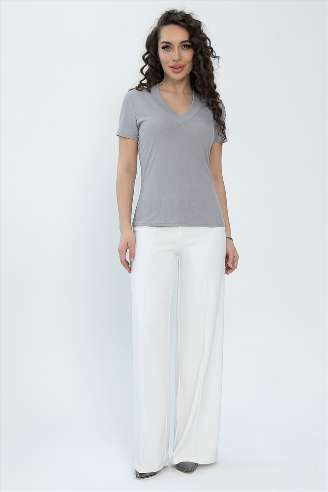 ID товара: 1121099 Состав: 65% Полиэстер, 30% Вискоза, 5% Эластан Сезон: Весна/Лето Длина: Средняя Фасон: Приталенный Рукав: короткие Вырез горловины: V-образный Основная ткань: Полиэстер Стиль: Базовый Страна бренда: Россия Страна производства: Россия Состав: 65% полиэстер, 30% вискоза, 5% эластан. Материал: трикотаж "Лапша". Цвет: серый. Принт: отсутствует. Силуэт: приталенный. Карманы: отсутствуют. Подкладка: отсутствует. Вид застежки: без застёжки. Декоративные элементы: отсутствуют. Длина: 44/ 59 см, 46-48/ 60 см, 50-52/ 61 см, 54-56/ 62 см. Блузка отснята с брюками арт.Б12685-13 Однотонная блузка без принта – настоящий маст-хэв! Благодаря своей универсальности, она легко сочетается с практически любой одеждой, создавая множество стильных образов. V-образный вырез подчеркивает линию декольте, а короткий рукав делает ее идеальным выбором для теплого времени года или как базовый слой под пиджак или кардиган. Материал хорошо тянется. Уход за изделием: ручная стирка до 30 градусов; нельзя отбеливать; отжим запрещён; гладить при t не более 110 С; гладить с изнанки. Внимание! Рекомендуем ориентироваться на размерную сетку и выбирать свой привычный размер, согласно размерной таблице. *Допуск отклонения длины при массовом производстве 1-3 см является нормой. Комментарии к товару