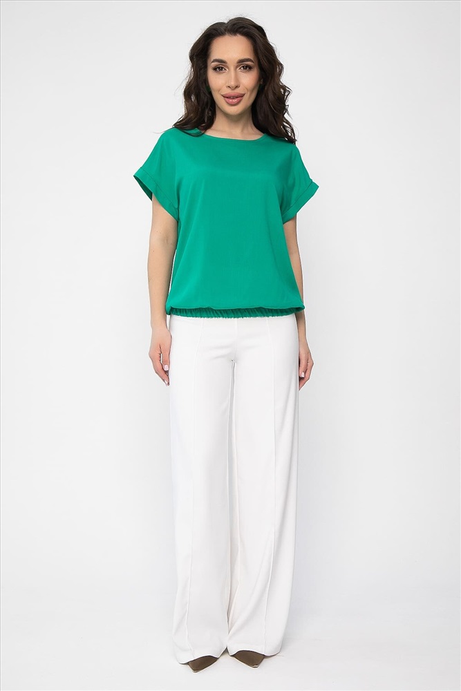 Состав : 50% хлопок, 50% вискоза Материал : штапель Цвет : Зеленый Принт : отсутствует Силуэт : свободный Карманы : Отсутствуют Подкладка : Отсутствует Вид застежки : без застежки Декоративные элементы : резинка по низу Длина : 44-66 см, 46-66 см, 48-68 см, 50-68 см. Отснято с брюками Б12685-13 Блуза свободного силуэта со спущенным рукавом это универсальная вещь для повседневных образов. Крой блузы позволяет скрыть несовершенства фигуры, выгодно ее подчеркивая. Изделие подойдет для носки с классическими брюками, юбками или джинсами. Натуральный состав ткани делает эту блузу идеальной для ярких летних образов.
