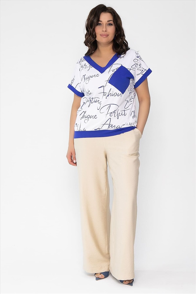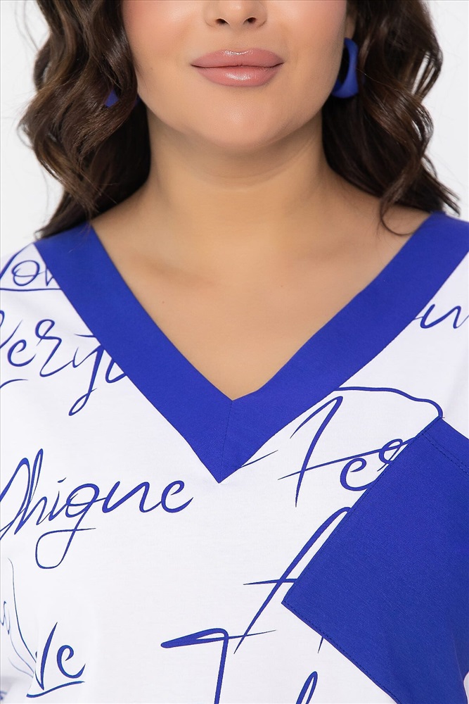 ID товара: 1123403 Состав: 95% Хлопок, 5% Спандекс Сезон: Весна/Лето Длина: Средняя Фасон: Полуприлегающий Рукав: Короткие Вырез горловины: V-образный Рисунок: Надпись Декоративные элементы: Принт Основная ткань: Хлопок Стиль: повседневный Страна бренда: Россия Страна производства: Россия Состав: 95% хлопок, 5% спандекс. Материал: хлопок. Цвет: белый, синий. Принт: надписи. Силуэт: полуприлегающий. Карманы: есть. Подкладка: отсутствует. Вид застежки: без застёжки. Декоративные элементы: отсутствуют. Длина: 50-54/ 64 см. Футболка из хлопка — идеальный выбор для стильных летних образов! Карман на груди добавляет оригинальности. Легкая и дышащая ткань обеспечивает комфорт в жару. Сочетается с шортами, юбками и джинсами. Добавьте аксессуары — и наслаждайтесь летом! Уход за изделием: ручная стирка до 30 градусов; нельзя отбеливать; отжим запрещён; гладить при t не более 110 С; гладить с изнанки. Внимание! Рекомендуем ориентироваться на размерную сетку и выбирать свой привычный размер, согласно размерной таблице. *Допуск отклонения длины при массовом производстве 1-3 см является нормой. Комментарии к товару