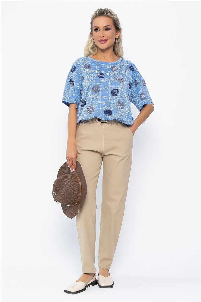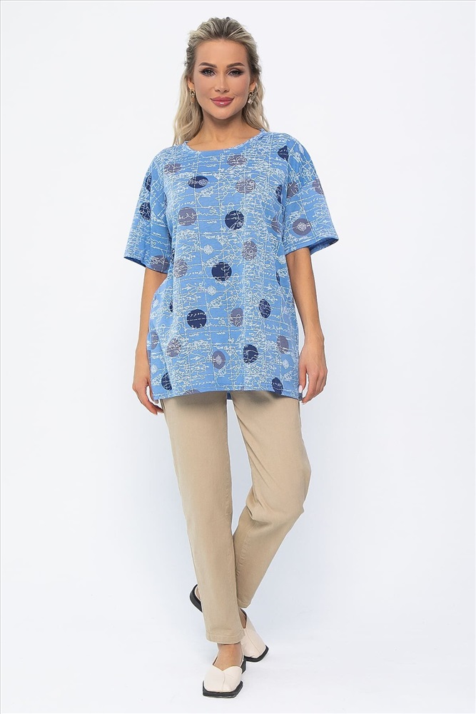 ID товара: 1123899 Состав: 50% Вискоза, 40% Хлопок, 10% Спандекс Сезон: Весна/Лето Длина: Средняя Фасон: Свободный Рукав: короткие Вырез горловины: Округлый Рисунок: Горох Декоративные элементы: Принт Основная ткань: Вискоза Стиль: Повседневный Страна бренда: Россия Страна производства: Россия Состав: 50% вискоза, 40% хлопок, 10% спандекс. Материал: трикотаж. Цвет: джинсовый. Принт: круги, абстракция. Силуэт: оверсайз. Карманы: отсутствуют. Подкладка: отсутствует. Вид застежки: без застёжки. Декоративные элементы: отсутствуют. Длина: One size (44-50) - 70 см. Отснято с джинсами Б13645-4М Обновите свой летний гардероб с нашей блузкой в джинсовом оттенке! Она станет вашим идеальным спутником в теплые дни, даря комфорт и стильный вид. Легко сочетается с шортами, джинсами и юбками, что делает его отличным выбором как для повседневных прогулок, так и для отдыха. Уход за изделием: ручная стирка до 30 градусов; нельзя отбеливать; отжим запрещён; гладить при t не более 110 С; гладить с изнанки. Внимание! Рекомендуем ориентироваться на размерную сетку и выбирать свой привычный размер, согласно размерной таблице. *Допуск отклонения длины при массовом производстве 1-3 см является нормой. Комментарии к товару