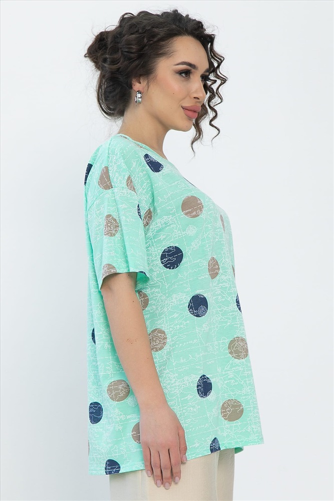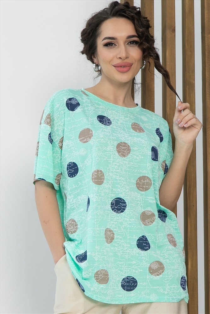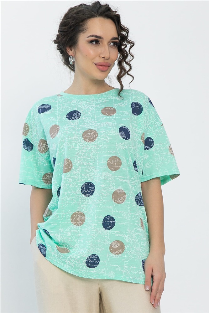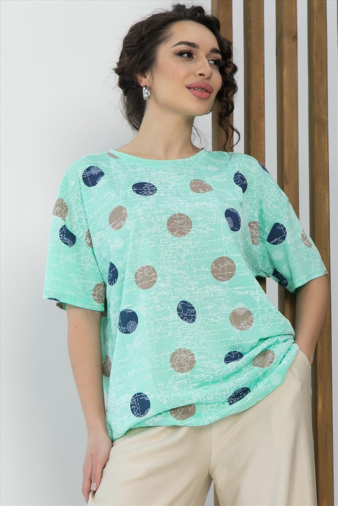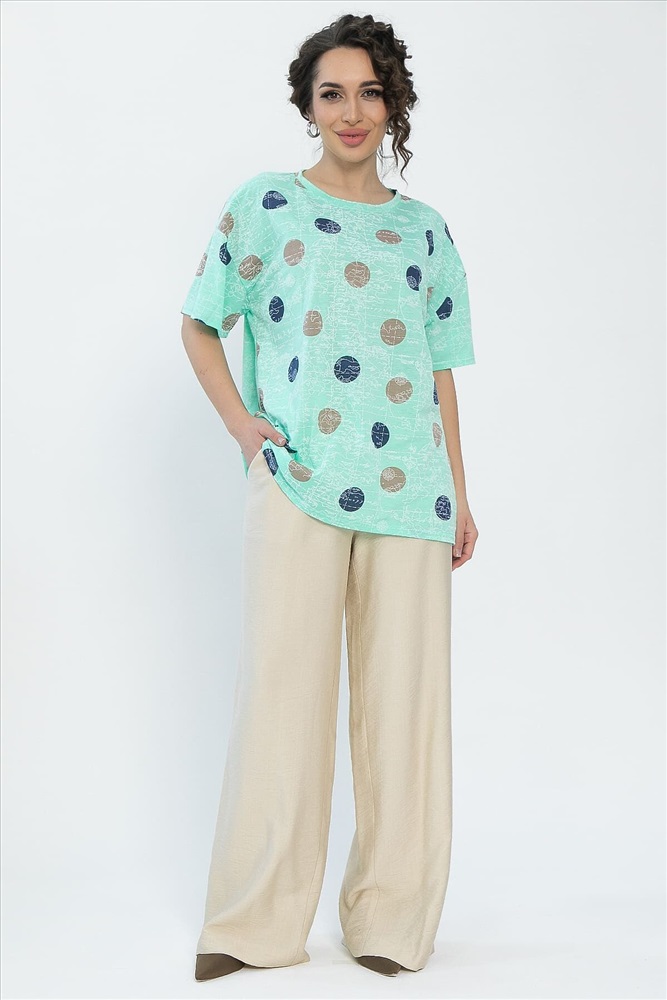 ID товара: 1123901 Состав: 50% Вискоза, 40% Хлопок, 10% Спандекс Сезон: Весна/Лето Длина: Средняя Фасон: Свободный Рукав: Короткие Вырез горловины: Округлый Рисунок: Горох Декоративные элементы: Принт Основная ткань: Вискоза Стиль: Повседневный Страна бренда: Россия Страна производства: Россия Состав: 50% вискоза, 40% хлопок, 10% спандекс. Материал: трикотаж. Цвет: зелёный. Принт: круги, абстракция. Силуэт: оверсайз. Карманы: отсутствуют. Подкладка: отсутствует. Вид застежки: без застёжки. Декоративные элементы: отсутствуют. Длина: One size (44-50) - 70 см. Отснято с брюками из комлекта К13591-30М Обновите свой летний гардероб с нашей блузкой в зелёном оттенке! Она станет вашим идеальным спутником в теплые дни, даря комфорт и стильный вид. Легко сочетается с шортами, джинсами и юбками, что делает его отличным выбором как для повседневных прогулок, так и для отдыха. Уход за изделием: ручная стирка до 30 градусов; нельзя отбеливать; отжим запрещён; гладить при t не более 110 С; гладить с изнанки. Внимание! Рекомендуем ориентироваться на размерную сетку и выбирать свой привычный размер, согласно размерной таблице. *Допуск отклонения длины при массовом производстве 1-3 см является нормой. Комментарии к товару