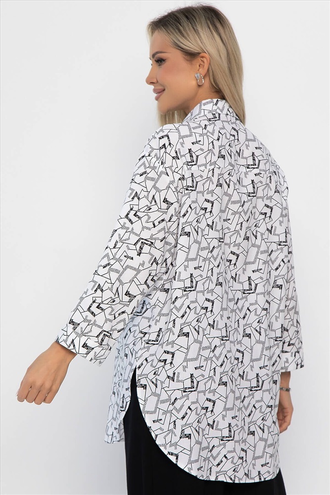 ID товара: 1127241 Состав: 100% Вискоза Сезон: Весна/Лето Длина: Средняя Фасон: Свободный Рукав: короткие Вырез горловины: Отложной воротничок Рисунок: Абстракция Декоративные элементы: Принт Основная ткань: Вискоза Стиль: Повседневный Страна бренда: Россия Страна производства: Россия Состав : 100% вискоза Материал : штапель Цвет : Белый Принт : абстракция Силуэт : оверсайз Карманы : Есть Подкладка : Отсутствует Вид застежки : пуговицы Декоративные элементы : отсутствуют Длина : 44-81 см, 46-81 см, 48-82 см, 50-82 см, 52-83 см, 54-83 см Классическая чёрно-белая блузка — это универсальная вещь, которая станет незаменимой в вашем гардеробе! Она идеально подойдёт для любого случая: будь то прогулка, работа в офисе или встреча с друзьями. Блузка легко сочетается с различными предметами гардероба: брюками, джинсами или юбкой. Она также прекрасно смотрится как под пиджаком, так и под жакетом. Свободный крой блузки обеспечивает комфорт и свободу движений. Рубашечный воротник придаёт образу элегантность и стиль. На спинке блузки есть кокетка, а углы низа рубашки закруглены, что создаёт стильный и завершённый образ. Внимание! Рекомендуем ориентироваться на размерную сетку и выбирать свой привычный размер, согласно размерной таблице. *Допуск отклонения длины при массовом производстве 1-3 см является нормой. Уход за изделием: Ручная стирка или стирка в машине при температуре до 30 °C, деликатный режим. Не использовать отбеливатели. Разрешена глажка при температуре до 110 °C. При глажке использовать специальную насадку на подошве утюга, гладить с паром. Не замачивать и не выжимать. Стирать изделие наизнанку, отдельно от других вещей. Комментарии к товару