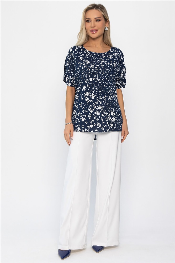 ID товара: 1127244 Состав: 100% Вискоза Сезон: Весна/Лето Длина: Средняя Фасон: Прямой Рукав: Короткие Вырез горловины: Округлый Рисунок: цветочный Декоративные элементы: Принт Основная ткань: Вискоза Стиль: Повседневный Страна бренда: Россия Страна производства: Россия Состав : 100% вискоза Материал : штапель Цвет : Синий Принт : цветы Силуэт : свободный Карманы : Отсутствуют Подкладка : Отсутствует Вид застежки : без застёжки Декоративные элементы : отсутствуют Длина : 44-70 см, 46-71 см, 48-72 см, 50-73 см, 52-74 см, 54-75 см, 56-76 см Длина по переду (ассиметричный крой) : 44-65 см, 46-66 см, 48-67 см, 50-68 см, 52-69 см, 54-70 см, 56-71 см Блузка отснята с брюками Б12685-13 [ https://ltcollection.ru/catalog/bryuki/161858/ ] Блузка с коротким рукавом, выполненная из плательного штапеля, — это отличный выбор для создания модного и изысканного образа! Спущенные рукава и разрезы по бокам придают этой блузке лёгкость и удобство, что делает её идеальным вариантом для жарких дней. Она прекрасно сочетается как с юбкой, так и с брюками, позволяя вам создавать разнообразные комплекты для любого случая. Добавьте эту универсальную блузку в свой гардероб и наслаждайтесь летними прогулками с уверенностью! Внимание! Рекомендуем ориентироваться на размерную сетку и выбирать свой привычный размер, согласно размерной таблице. *Допуск отклонения длины при массовом производстве 1-3 см является нормой. Уход за изделием: Ручная стирка или стирка в машине при температуре до 30 °C, деликатный режим. Не использовать отбеливатели. Разрешена глажка при температуре до 110 °C. При глажке использовать специальную насадку на подошве утюга, гладить с паром. Не замачивать и не выжимать. Стирать изделие наизнанку, отдельно от других вещей. Комментарии к товару