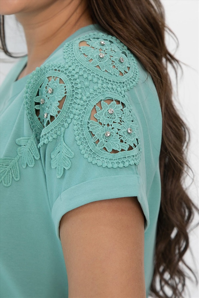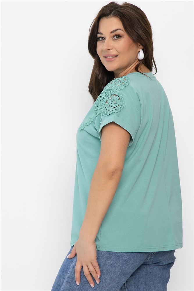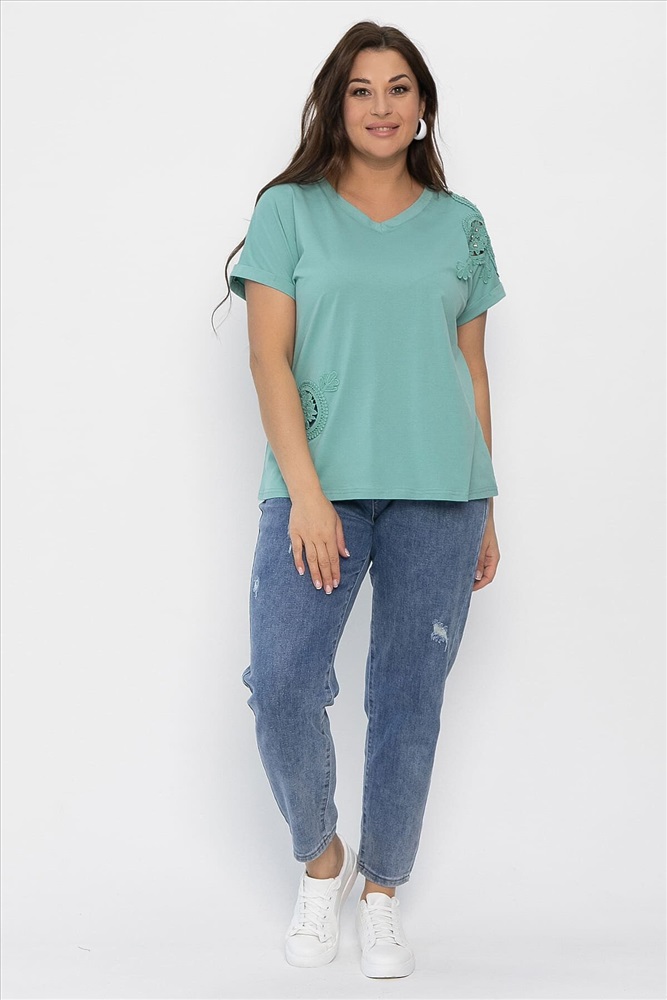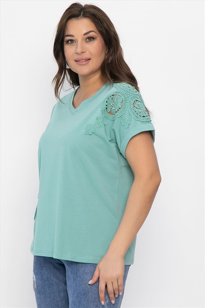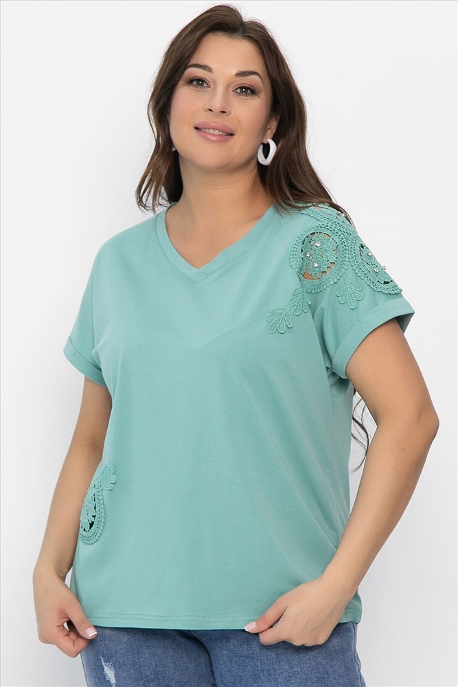 ID товара: 1127831 Состав: 95% Хлопок, 5% Спандекс Сезон: Весна/Лето Длина: Средняя Фасон: Полуприлегающий Рукав: Короткие Вырез горловины: V-образный Декоративные элементы: Стразы Основная ткань: Хлопок Стиль: Повседневный Страна бренда: Россия Страна производства: Россия Состав : 95% хлопок, 5% спандекс Материал : хлопок Цвет : Зеленый Принт : отсутствует Силуэт : полуприлегающий Карманы : Отсутствуют Подкладка : Отсутствует Вид застежки : без застёжки Декоративные элементы : стразы и кружево Длина : 48-63 см, 50-65 см, 52-67 см, 54-71 см, 56-71 см Блузка отснята с джинсами Б11315 [ https://ltcollection.ru/catalog/bryuki/149901/ ] Блуза с короткими рукавами в оливковом оттенке, украшенная вставками из кружева и дополненная стразами — это отличный способ разнообразить свой повседневный гардероб. В этой модели использованы элегантные кружевные вставки, которые придают ей изысканность и романтичность. Её можно сочетать с джинсами, юбками или брюками. Эта блуза станет идеальным выбором как для работы, так и для встреч с друзьями. Она придаст вашему образу нотку шика и утончённости. Внимание! Рекомендуем ориентироваться на размерную сетку и выбирать свой привычный размер, согласно размерной таблице. *Допуск отклонения длины при массовом производстве 1-3 см является нормой. Уход за изделием: Ручная стирка или стирка в машине при температуре до 30 °C, деликатный режим. Не использовать отбеливатели. Разрешена глажка при температуре до 110 °C. При глажке использовать специальную насадку на подошве утюга, гладить с паром. Не замачивать и не выжимать. Стирать изделие наизнанку, отдельно от других вещей. Комментарии к товару