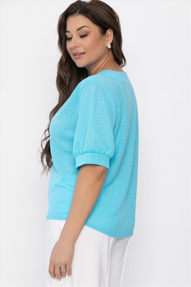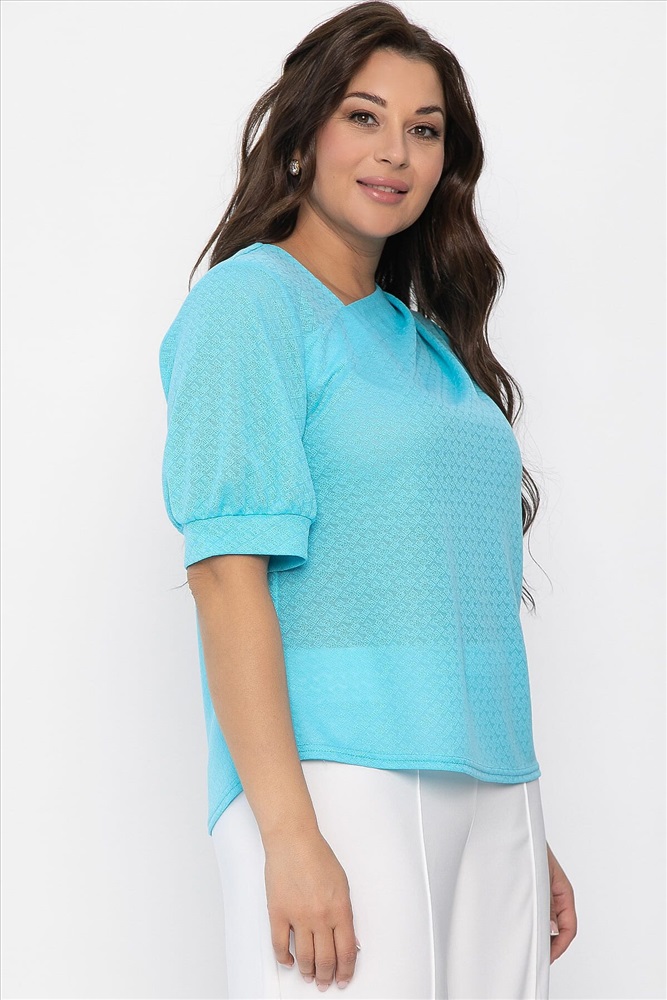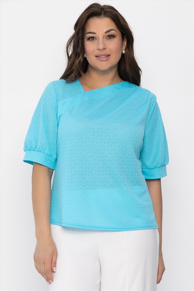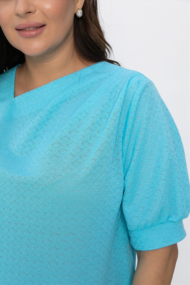 Блуза свободного кроя в голубом цвете станет ярким акцентом в вашем гардеробе. Асимметричный вырез горловины добавляет образу оригинальности и привлекает внимание необычным дизайном. Мягкие складки на левой стороне эффектно подчеркивают линию плеча, а рукава-фонарики создают романтичный и воздушный силуэт. Блуза прекрасно сочетается с разными низами — от юбок до брюк, подходя как для повседневных, так и для торжественных мероприятий. Добавьте эту уникальную модель в свой гардероб и подчеркните свою индивидуальность.