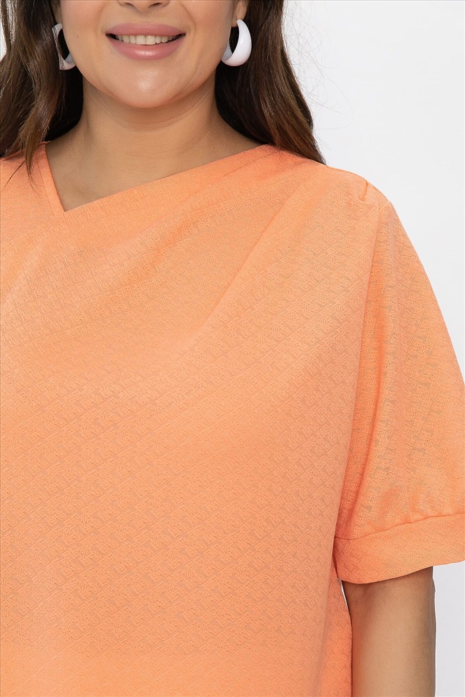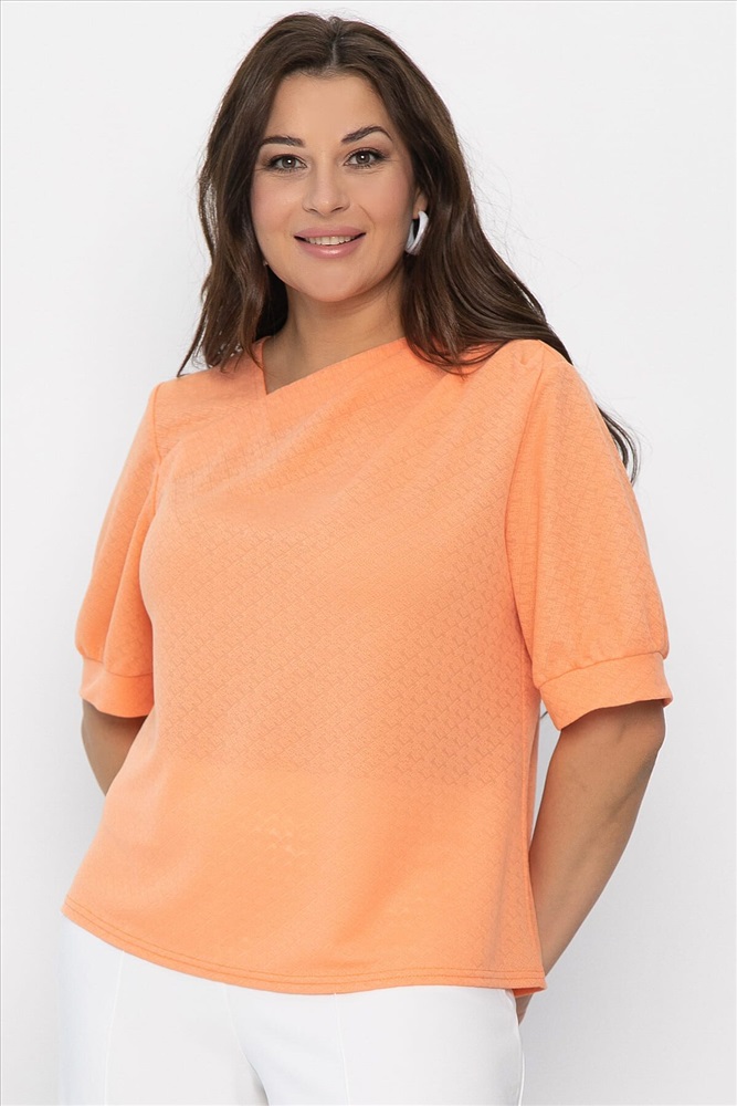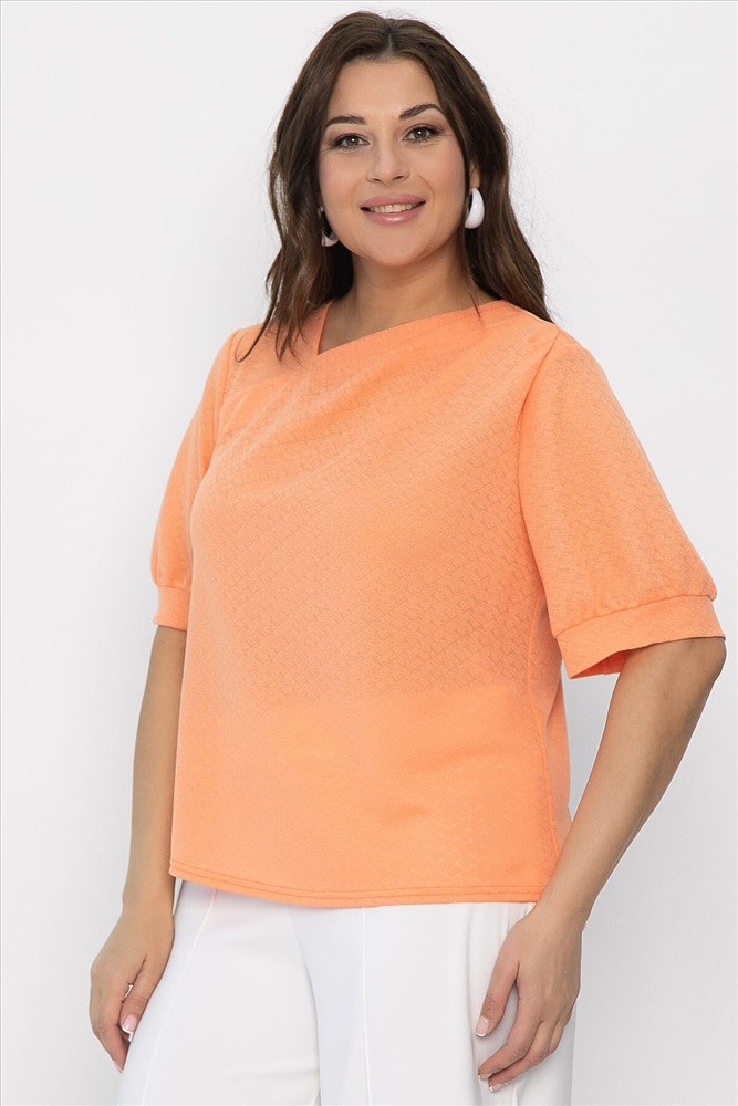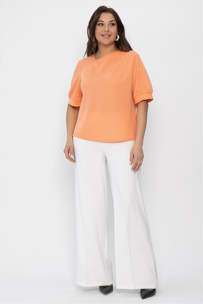 ID товара: 1127842 Состав: 65% Вискоза, 30% Нейлон, 5% Эластан Сезон: Весна/Лето Длина: Средняя Фасон: Свободный Рукав: короткие Вырез горловины: Асимметричный Основная ткань: Полиэстер Стиль: классический Страна бренда: Россия Страна производства: Россия Состав : 65% вискоза, 30% нейлон, 5% эластан Материал : трикотаж (фукро жаккард) Цвет : Оранжевый Принт : абстракция Силуэт : свободный Карманы : Отсутствуют Подкладка : Отсутствует Вид застежки : без застёжки Декоративные элементы : отсутствуют Длина : 48-62 см, 50-63 см, 52-65 см, 54-66 см, 56-69 см Блузка отснята с брюками Б12685-13 [ https://ltcollection.ru/catalog/bryuki/161858/ ] Блуза свободного кроя в оранжевом цвете станет ярким акцентом в вашем гардеробе. Асимметричный вырез горловины добавляет образу оригинальности и привлекает внимание необычным дизайном. Мягкие складки на левой стороне эффектно подчеркивают линию плеча, а рукава-фонарики создают романтичный и воздушный силуэт. Блуза прекрасно сочетается с разными низами — от юбок до брюк, подходя как для повседневных, так и для торжественных мероприятий. Добавьте эту уникальную модель в свой гардероб и подчеркните свою индивидуальность. Внимание! Рекомендуем ориентироваться на размерную сетку и выбирать свой привычный размер, согласно размерной таблице. *Допуск отклонения длины при массовом производстве 1-3 см является нормой. Уход за изделием: Ручная стирка или стирка в машине при температуре до 30 °C, деликатный режим. Не использовать отбеливатели. Разрешена глажка при температуре до 110 °C. При глажке использовать специальную насадку на подошве утюга, гладить с паром. Не замачивать и не выжимать. Стирать изделие наизнанку, отдельно от других вещей. Комментарии к товару