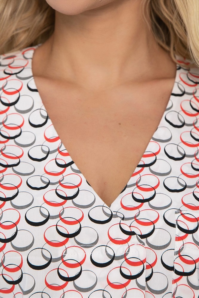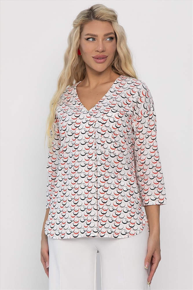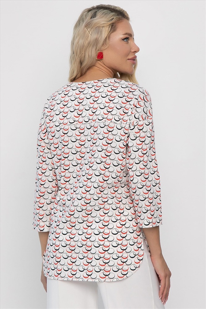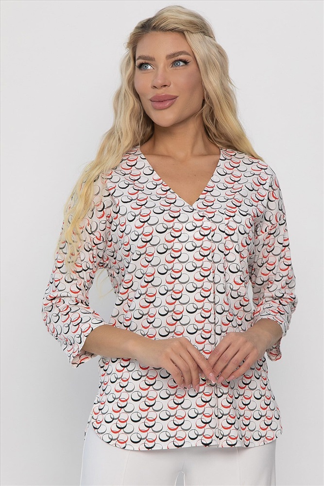 ID товара: 1128110 Состав: 60% Хлопок, 35% Полиэстер, 5% Эластан Сезон: Весна/Лето Длина: Средняя Фасон: Свободный Рукав: 3/4 Вырез горловины: V-образный Рисунок: Узор Декоративные элементы: Принт Основная ткань: Хлопок Стиль: Повседневный Страна бренда: Россия Страна производства: Россия Состав : 60% хлопок, 35% полиэстер, 5% эластан Материал : блузочная поплин Цвет : Белый Принт : круги Силуэт : асимметричный Карманы : Есть Подкладка : Отсутствует Вид застежки : без застёжки Декоративные элементы : отсутствуют Длина : 44-69 см, 46-69 см, 48-70 см, 50-70 см, 52-71 см, 54-71 см, 56-72 см Длина по переду (ассиметричный крой) : 44-66 см, 46-66 см, 48-67 см, 50-67 см, 52-68 см, 54-68 см, 56-69 см Отснято с брюками Б12685-13 [ https://nsk.ltcollection.ru/catalog/bryuki/161858/ ] Удобная и практичная блузка в бело-красном цвете идеально подходит для ежедневного ношения в теплое время года. Она выполнена в минималистичном стиле, который подчеркивает ваш естественный шарм и придает вашему облику особый шик. Разрезы по бокам обеспечивают свободу движения и дополнительный комфорт. Внимание! Рекомендуем ориентироваться на размерную сетку и выбирать свой привычный размер, согласно размерной таблице. *Допуск отклонения длины при массовом производстве 1-3 см является нормой. Уход за изделием: Ручная стирка или стирка в машине при температуре до 30 °C, деликатный режим. Не использовать отбеливатели. Разрешена глажка при температуре до 110 °C. При глажке использовать специальную насадку на подошве утюга, гладить с паром. Не замачивать и не выжимать. Стирать изделие наизнанку, отдельно от других вещей. Комментарии к товару