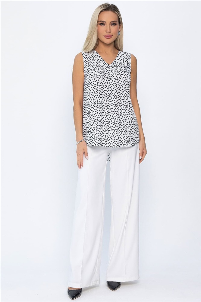 ID товара: 1128112 Состав: 100% Вискоза Сезон: Весна/Лето Длина: Средняя Фасон: А-силуэт Рукав: Без рукавов Вырез горловины: V-образный Рисунок: Горох Декоративные элементы: Принт Основная ткань: Полиэстер Стиль: Повседневный Страна бренда: Россия Страна производства: Россия Состав : 100% вискоза Материал : штапель Цвет : Белый Принт : цветочный Силуэт : А-силуэт Карманы : Отсутствуют Подкладка : Отсутствует Вид застежки : без застёжки Декоративные элементы : отсутствуют Длина : 44-69 см, 46-69 см, 50-70 см, 52-71 см, 54-71 см, 56-72 см Длина по переду (ассиметричный крой) : 44-64 см, 46-64 см, 50-65 см, 52-66 см, 54-66 см, 56-67 см Отснято с брюками Б12685-13 [ https://nsk.ltcollection.ru/catalog/bryuki/161858/ ] Великолепная летняя блуза в чёрно-белой гамме, выполненная из лёгкого и дышащего материала, станет идеальным выбором для жарких дней. Этот элемент одежды гармонично дополнит любой повседневный образ, придав ему стильную нотку. Блуза прекрасно сочетается с брюками, джинсами и юбками. Внимание! Рекомендуем ориентироваться на размерную сетку и выбирать свой привычный размер, согласно размерной таблице. *Допуск отклонения длины при массовом производстве 1-3 см является нормой. Уход за изделием: Ручная стирка или стирка в машине при температуре до 30 °C, деликатный режим. Не использовать отбеливатели. Разрешена глажка при температуре до 110 °C. При глажке использовать специальную насадку на подошве утюга, гладить с паром. Не замачивать и не выжимать. Стирать изделие наизнанку, отдельно от других вещей. Комментарии к товару