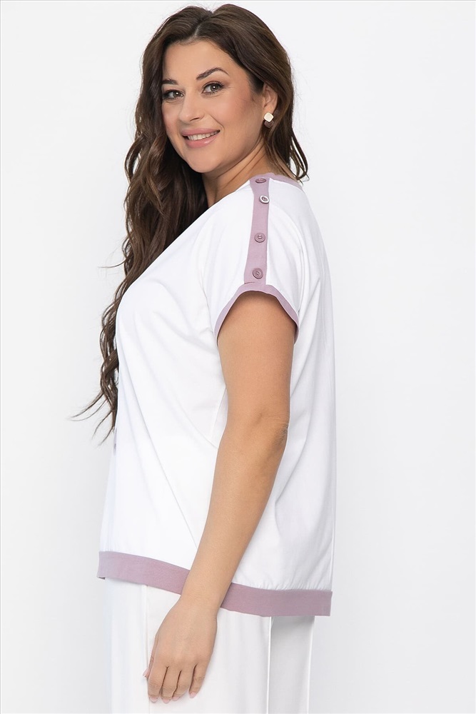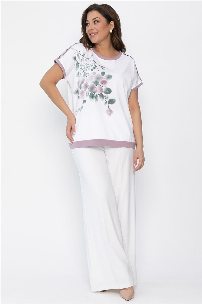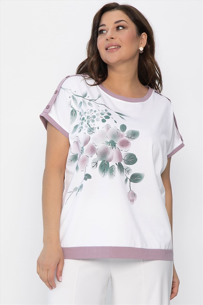 ID товара: 1128114 Состав: 95% Хлопок, 5% Спандекс Сезон: Весна/Лето Длина: Средняя Фасон: Полуприлегающий Рукав: Короткие Вырез горловины: Округлый Рисунок: цветочный Декоративные элементы: Принт Основная ткань: Хлопок Стиль: Повседневный Страна бренда: Россия Страна производства: Россия Состав : 95% хлопок, 5% спандекс Материал : хлопок Цвет : Белый Принт : листья, цветы Силуэт : полуприлегающий Карманы : Отсутствуют Подкладка : Отсутствует Вид застежки : без застёжки Декоративные элементы : пуговицы на плечах Длина : 50-65 см, 52-68 см, 54-70 см Отснято с брюками Б12685-13 [ https://nsk.ltcollection.ru/catalog/bryuki/161858/ ] Летняя блуза из хлопка в бело-сиреневом цвете — идеальный выбор для комфортного и стильного образа в жаркую погоду! Изготовленная из мягкого и дышащего хлопка, она обеспечивает отличную вентиляцию и легкость. Простой, но элегантный дизайн позволяет легко сочетать блузу с различными элементами гардероба, будь то шорты, юбки или джинсы. Внимание! Рекомендуем ориентироваться на размерную сетку и выбирать свой привычный размер, согласно размерной таблице. *Допуск отклонения длины при массовом производстве 1-3 см является нормой. Уход за изделием: Ручная стирка или стирка в машине при температуре до 30 °C, деликатный режим. Не использовать отбеливатели. Разрешена глажка при температуре до 110 °C. При глажке использовать специальную насадку на подошве утюга, гладить с паром. Не замачивать и не выжимать. Стирать изделие наизнанку, отдельно от других вещей. Комментарии к товару