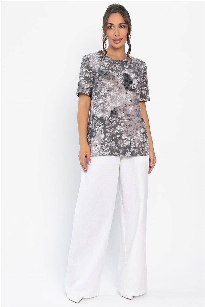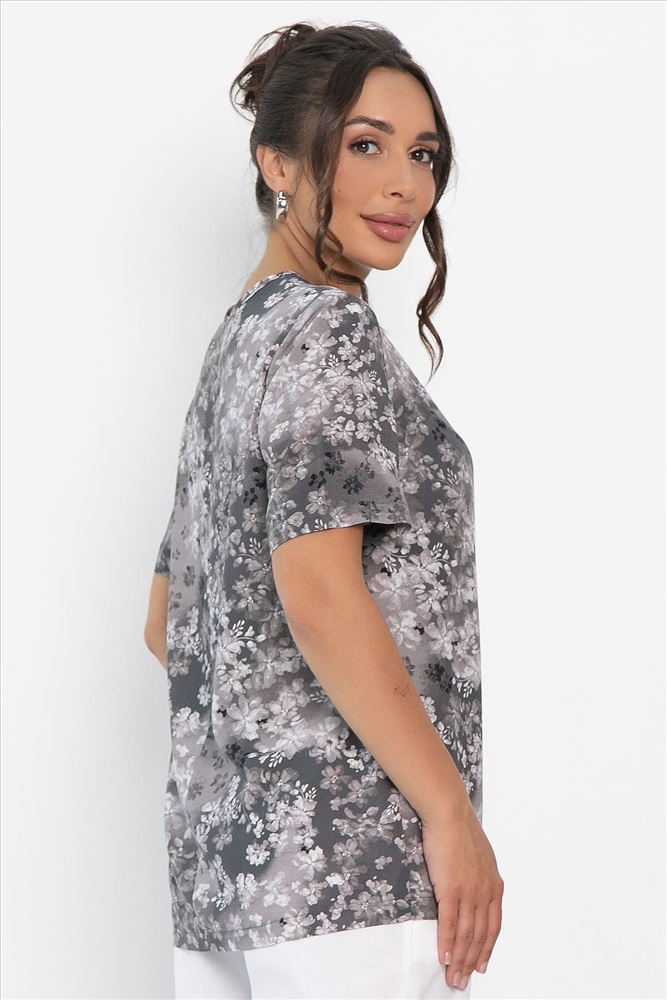 ID товара: 1130849 Состав: 100% Вискоза Сезон: Весна/Лето Длина: Средняя Фасон: Прямой Рукав: короткие Вырез горловины: Округлый Рисунок: цветочный Декоративные элементы: Принт Основная ткань: Вискоза Стиль: классический Страна бренда: Россия Страна производства: Россия Состав : 100% вискоза Материал : штапель Цвет : Серый Принт : цветочный Силуэт : прямой Карманы : Отсутствуют Подкладка : Отсутствует Вид застежки : без застёжки Декоративные элементы : отсутствуют Длина : 44-66 см, 46-68 см, 48-68 см, 50-70 см, 52-72 см Серая женская блузка с цветочным принтом — стильный и универсальный элемент гардероба. Втачной рукав и прямой крой обеспечивают комфорт и идеальную посадку по фигуре. Горловина с обработанной окантовкой добавляет аккуратности и завершает образ. Легко сочетается с разными вещами, подчеркивая женственность и уверенность. Внимание! Рекомендуем ориентироваться на размерную сетку и выбирать свой привычный размер, согласно размерной таблице. *Допуск отклонения длины при массовом производстве 1-3 см является нормой. Уход за изделием: Ручная стирка или стирка в машине при температуре до 30 °C, деликатный режим. Не использовать отбеливатели. Разрешена глажка при температуре до 110 °C. При глажке использовать специальную насадку на подошве утюга, гладить с паром. Не замачивать и не выжимать. Стирать изделие наизнанку, отдельно от других вещей. Комментарии к товару