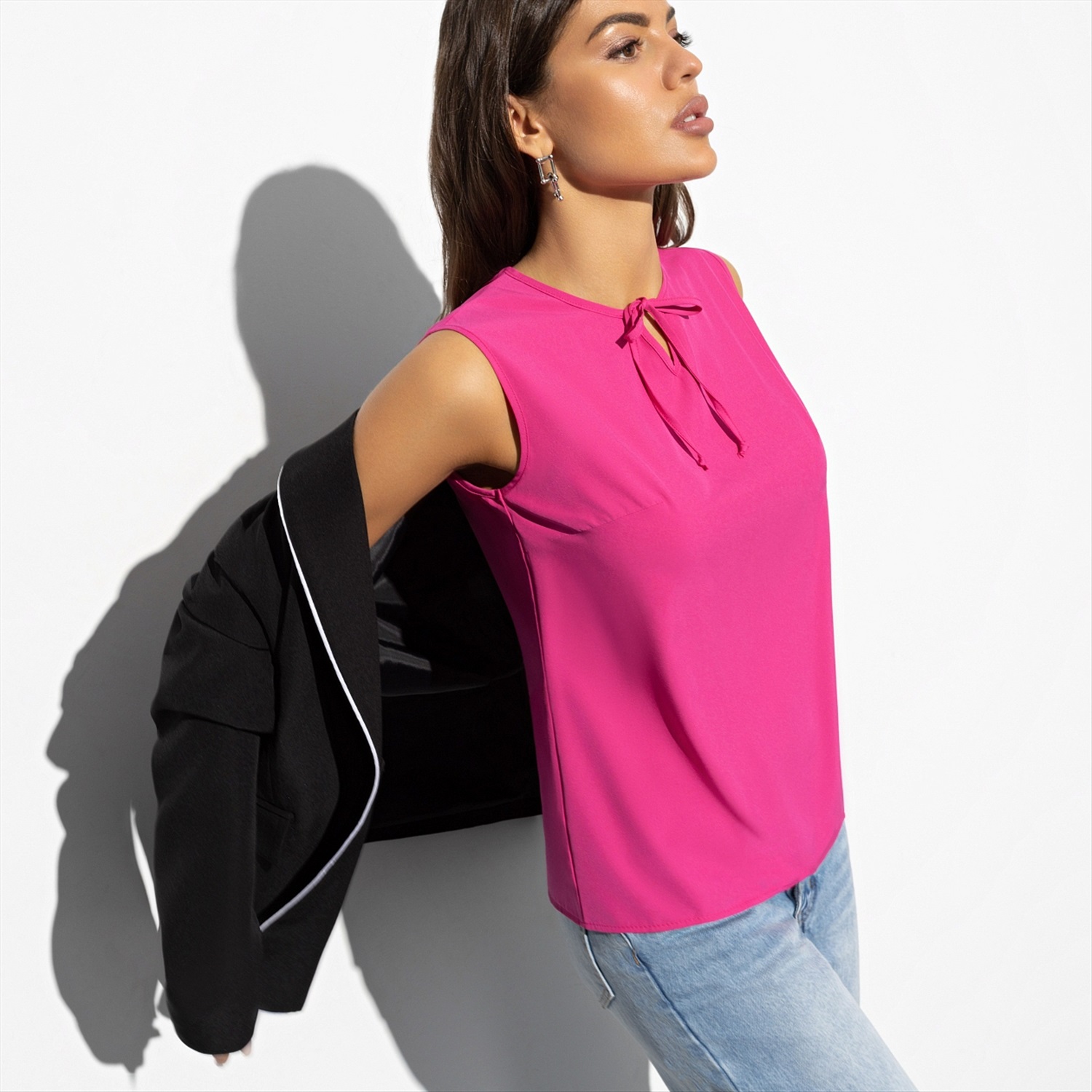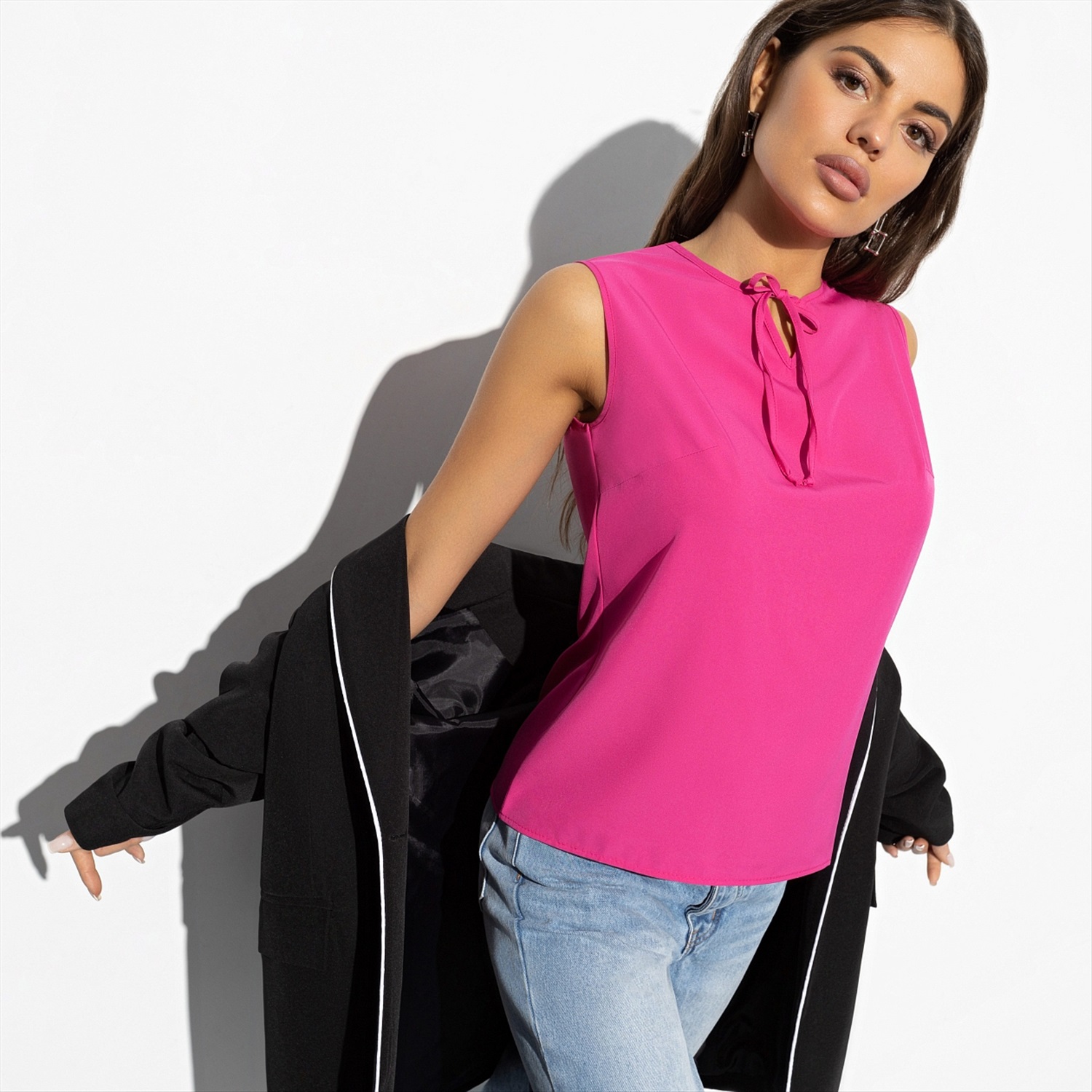 Трендовая фуксия рвет сезон! В ярко-розовой блузе ты – аппетитная клубничка, что не каждому «по зубам». Соблазнительный образ гарантирует непревзойденный магнетизм твоей харизме.