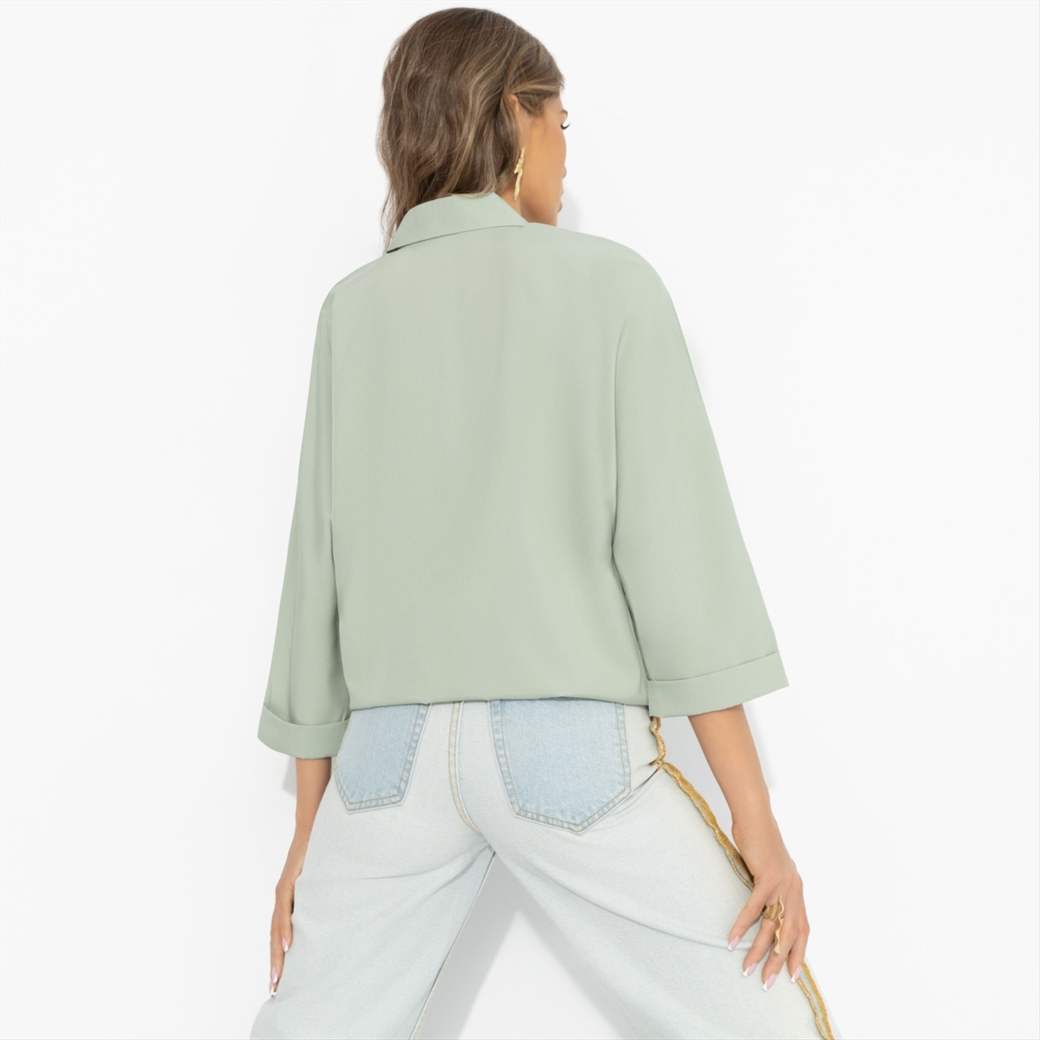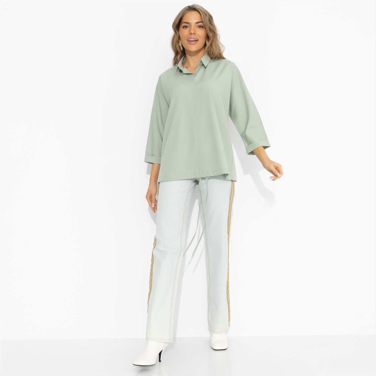 Почему героини, которые всё держат под контролем, редко носят яркие цвета? Хаки – выбор женщин с внутренним стержнем. Его любят и Виктория Бекхэм, и персонажи сериалов о сильных, деловых женщинах. Эта блуза – про устойчивость и собранность. Про стиль, который не требует одобрения и не зависит от обстоятельств. Мягкая «ниагара» пластично ложится по фигуре и комфортна в носке. Оттенок хаки легко комбинируется с чёрным, молочным, коричневым и денимом. Универсальный вариант для города и офиса. Комментарии к товару