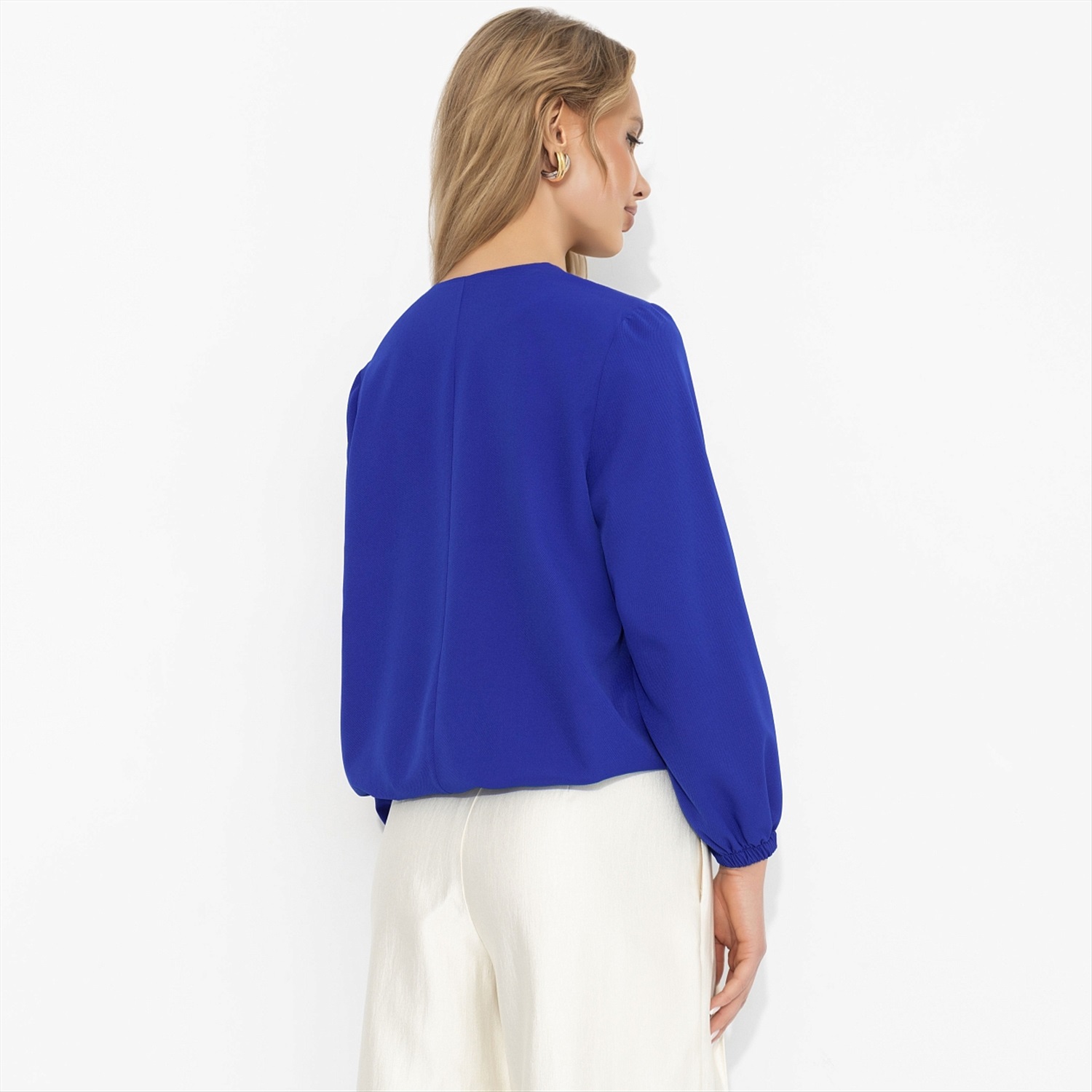 Щёлк – моментальня вспышка. Как будто где-то щёлкнул рубильник, и весна включилась. Этот электрический синий бьёт точно в цель: тебя заметит каждый. Глубокий V-вырез вытягивает силуэт, мягкие рукава добавляют пластики, твил красиво держит форму и струится при движении. Гладкая и комфортная ткань дарит тебе ультраженственность. Он просто посмотрел – и уже весь твой. Блуза оформлена резинкой по нижнему краю и завязками.