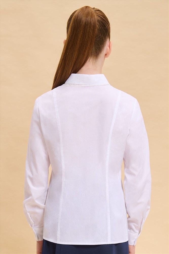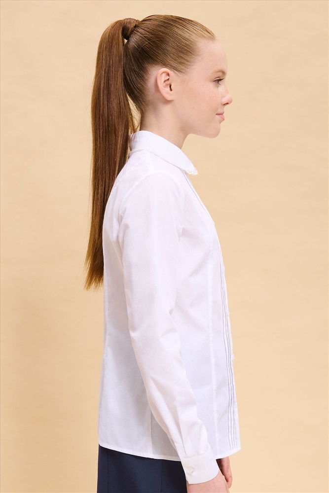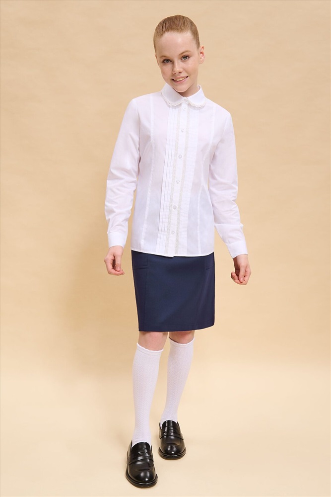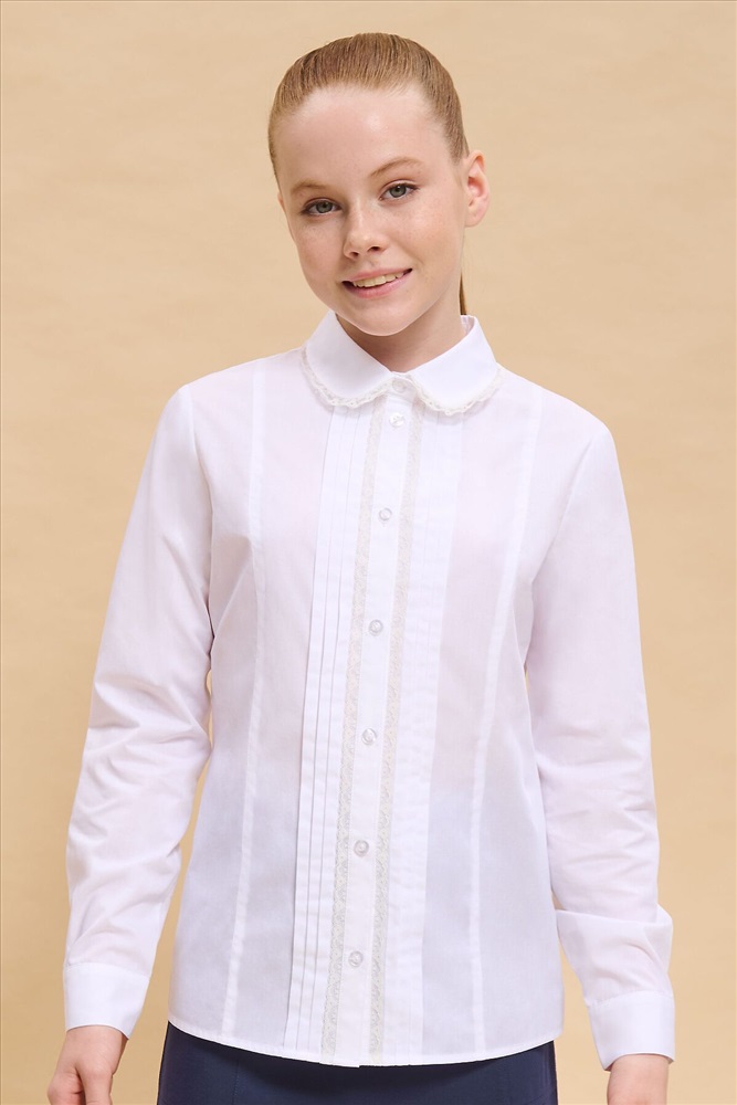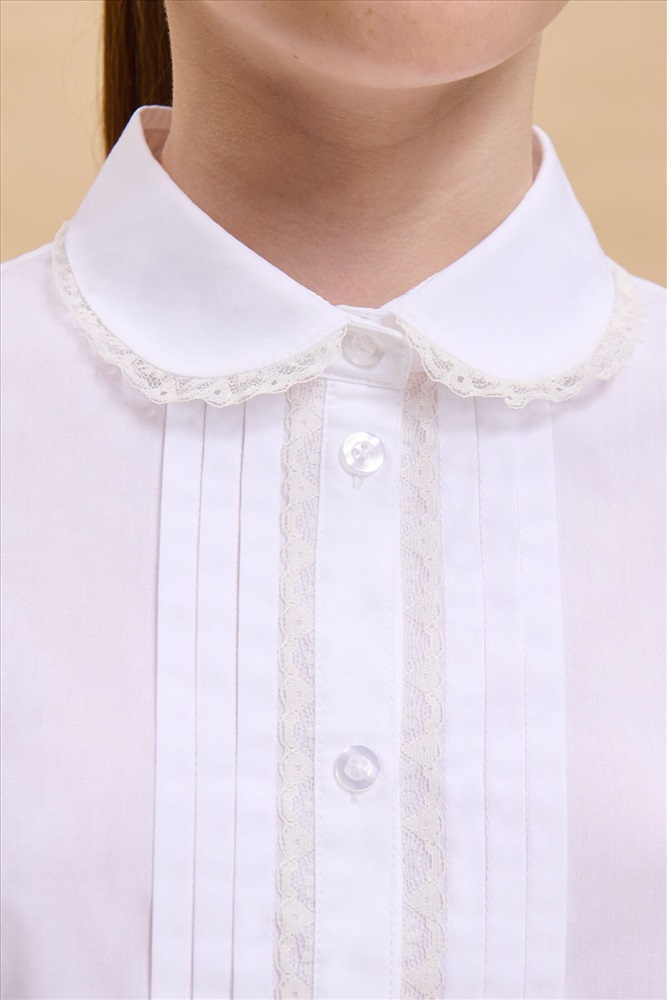 ID товара: 1000002 Состав: 60% Хлопок, 40%П олиэстер Сезон: Демисезон Длина: Средняя Фасон: Полуприлегающий Рукав: длинные Вид застежки: Пуговицы Вырез горловины: Отложной воротничок Основная ткань: Хлопок Стиль: классический Страна бренда: Россия Страна производства: Китай Школьная блузка классического полуприлегающего силуэта с отложным воротником для девочки. Блузка в школу с рельефами по переду и спинке не сковывает движений ребёнка. Перед украшают застроченные вдоль центральной планки складки и тонкое изящное кружево. Модель дополнена длинными рукавами небольшого объема на манжете с застежкой. Аккуратный круглый воротник с кружевом придаёт изделию женственности и изысканности. В составе ткани преобладает высококачественный хлопок — ребёнку не жарко, кожа дышит. Благодаря полиэстеру блузка в школу для девочки отлично сохраняет форму и первоначальный внешний вид. Для школьных рубашек мы используем сорочечную ткань, плотностью 100гр/м2. Модель однотонная, без принта. В ассортименте представлены блузки для девочек школьные универсальных цветов. Они легко сочетаются с различными брюками, юбками, сарафанами. Блузка детская подходит как для повседневной носки в школу, так и для более торжественного случая — в зависимости от того, с чем её надеть. Отличный выбор школьной формы для вашей девочки. Помните о правильном уходе за изделием: рекомендуется стирать при температуре не выше 30 °C, без предварительного замачивания, с изнанки. Это поможет сохранить качество и цвет блузки на долгое время. Не забывайте о выборе правильного размера. Используйте таблицу размеров на фотографии, чтобы выбрать подходящий вариант. Обратите внимание, что цвет товара на экране вашего устройства может отличаться от реального. Комментарии к товару