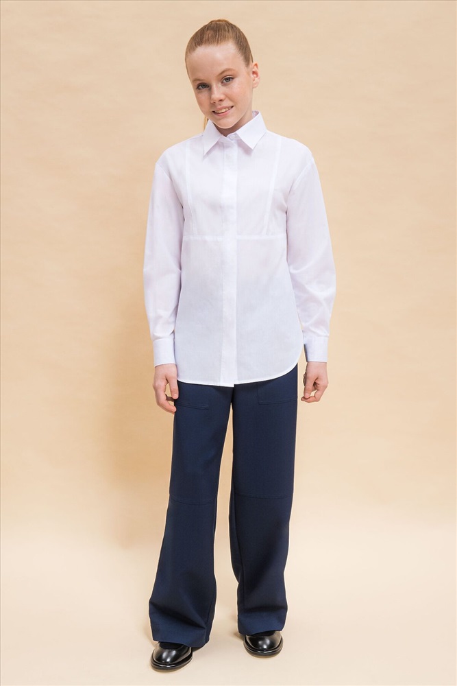 ID товара: 987685 Состав: 60% Хлопок, 40% Полиэстер Сезон: Демисезон Длина: Средняя Фасон: Свободный Рукав: длинные Вид застежки: Пуговицы Вырез горловины: Отложной воротничок Основная ткань: Хлопок Стиль: классический Страна бренда: Россия Страна производства: Китай Блузка детская свободного кроя для девочки. Школьная блузка с классическим отложным воротничком великолепно подходит девочкам с разными типами фигуры. Удобная потайная центральная застёжка на петли-пуговицы — классический вариант. По переду лаконичный декор в виде наклонных рельефов, идущих по подреза. Фигрная линия низа, в боковые уголки разрезов вставлен декоративный усилитель в виде треугольничка из основной ткани. В составе ткани преобладает высококачественный хлопок — блузка в школу для девочки мягкая, воздухопроницаемая и комфортная для ребёнка. Полиэстер помогает не терять форму и отличный внешний вид — изделие прослужит не один сезон. Для школьных рубашек мы используем сорочечную ткань, плотностью 100гр/м2. Школьная блузка для девочки лаконичного дизайна, без принта, её легко сочетать с различными брюками, юбками, сарафанами. Красивая и практичная блузка белая для девочки — подходит как для повседневной носки, так и для более торжественных случаев. Помните о правильном уходе за изделием: рекомендуется стирать при температуре не выше 30 °C, без предварительного замачивания, с изнанки. Это поможет сохранить качество и цвет блузки на долгое время. Не забывайте о выборе правильного размера. Используйте таблицу размеров на фотографии, чтобы выбрать подходящий вариант. Обратите внимание, что цвет товара на экране вашего устройства может отличаться от реального. Комментарии к товару