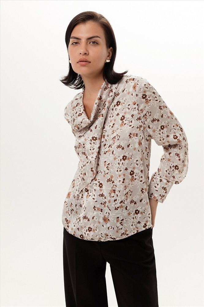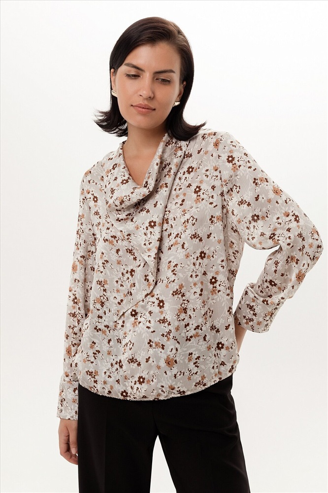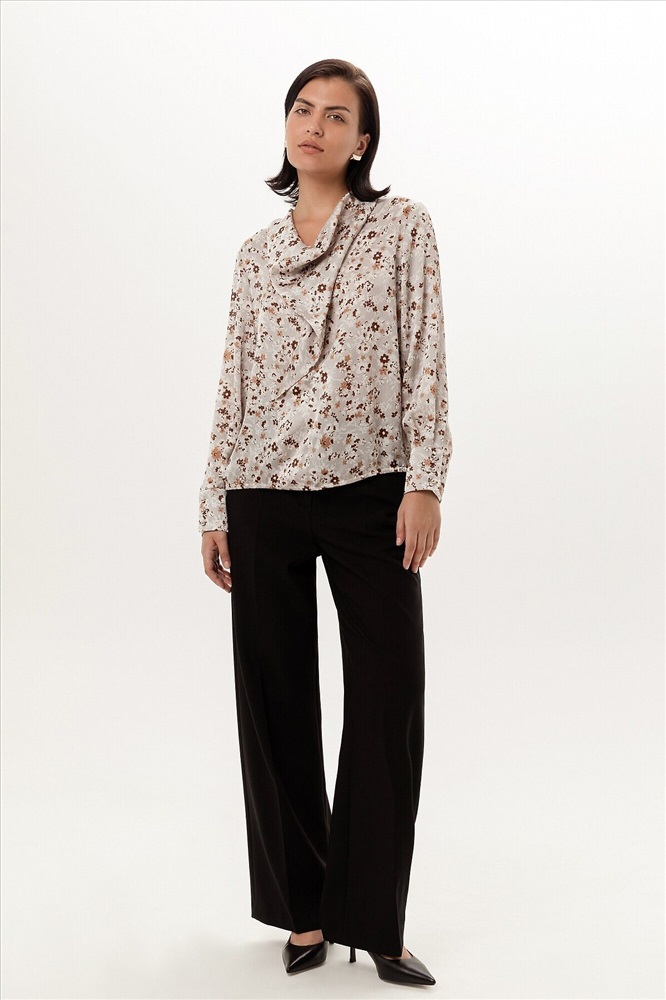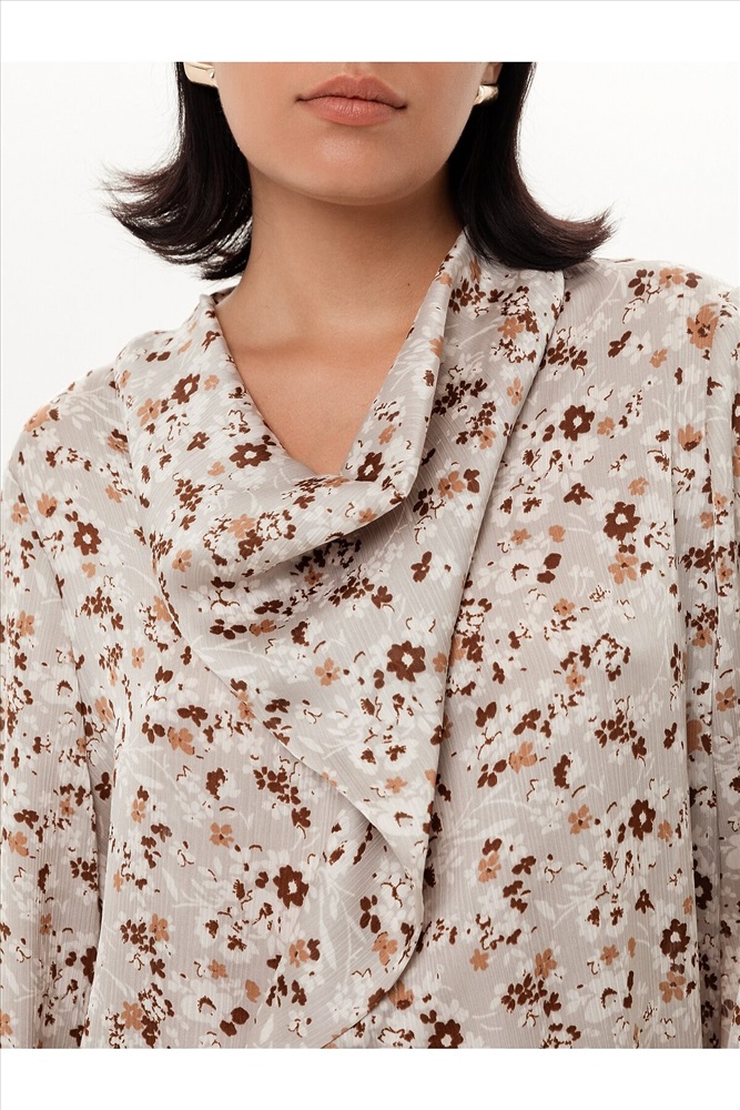 ID товара: 1090615 Состав: Полиэстер 80%, Вискоза 20% Сезон: Демисезон Длина: Средняя Фасон: Свободный Рукав: длинные Вырез горловины: Качели Рисунок: цветочный Декоративные элементы: Принт Основная ткань: Полиэстер Стиль: Романтический Страна бренда: Россия Страна производства: Россия Свободная блуза с вырезом качелями из плательной ткани с принтом по низу блузы вставлена резинка. Рукав втачной с узким высоким манжетом по низу и сборкой для объема. Комментарии к товару