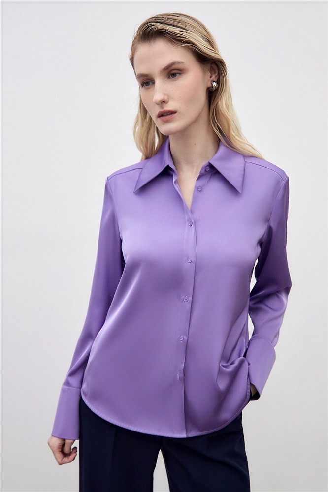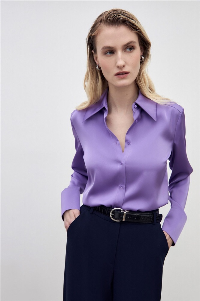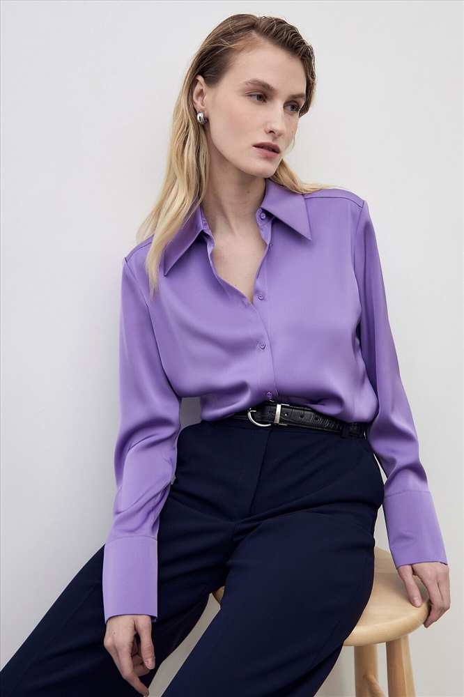 ID товара: 1090766 Состав: Полиэстер 80%, Вискоза 20% Сезон: Демисезон Длина: Средняя Фасон: Приталенная Рукав: длинные Вид застежки: Пуговицы Вырез горловины: Отложной воротничок Основная ткань: Полиэстер Стиль: классический Страна бренда: Россия Страна производства: Россия Приталенная блуза из плотной вискозной атласной ткани в нежном сиреневом цвете с трендовым острым воротником. Блуза с классическим рукавом и широким манжетом. Комментарии к товару