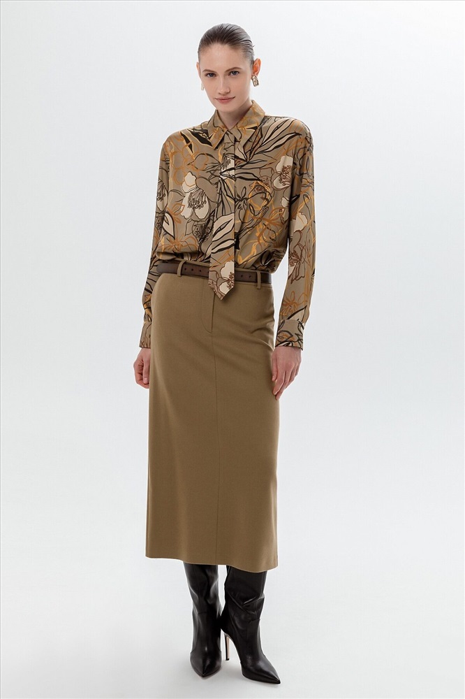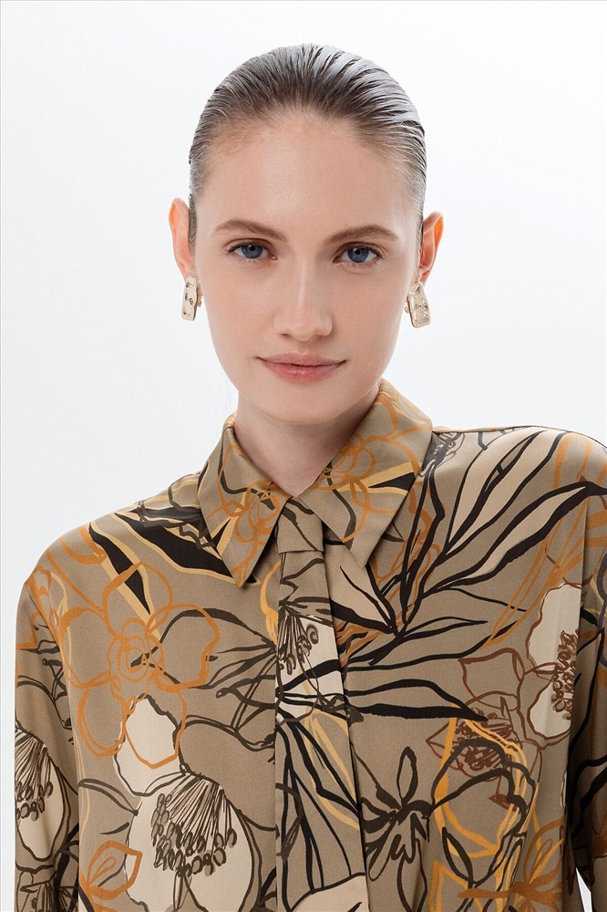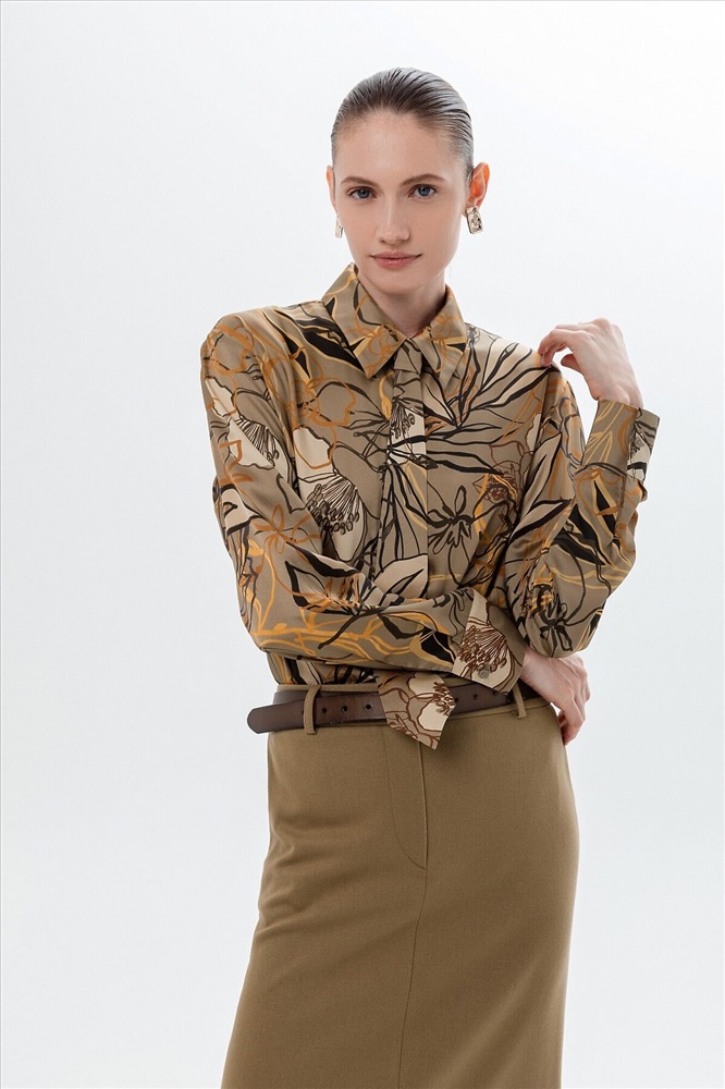 ID товара: 1090769 Состав: Полиэстер 80%, Вискоза 20% Сезон: Демисезон Длина: Средняя Фасон: Свободный Рукав: длинные Вид застежки: Пуговицы Вырез горловины: Отложной воротничок Рисунок: растительный Декоративные элементы: Принт Основная ткань: Полиэстер Стиль: классический Страна бренда: Россия Страна производства: Россия Свободная блуза из плательной ткани в принте с отложным воротником и спущенным плечом. На спинке идет кокетка со складками под ней. Блуза с прямым краем по низу, с разрезами по бокам. В комплект входит галстук из той же ткани, что и блуза. Галстук крепится на пуговицы к воротнику блузы. Комментарии к товару