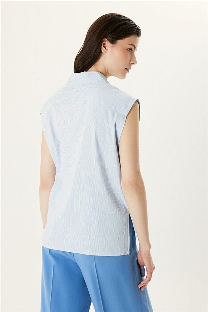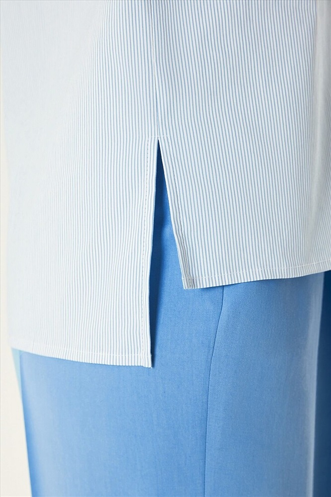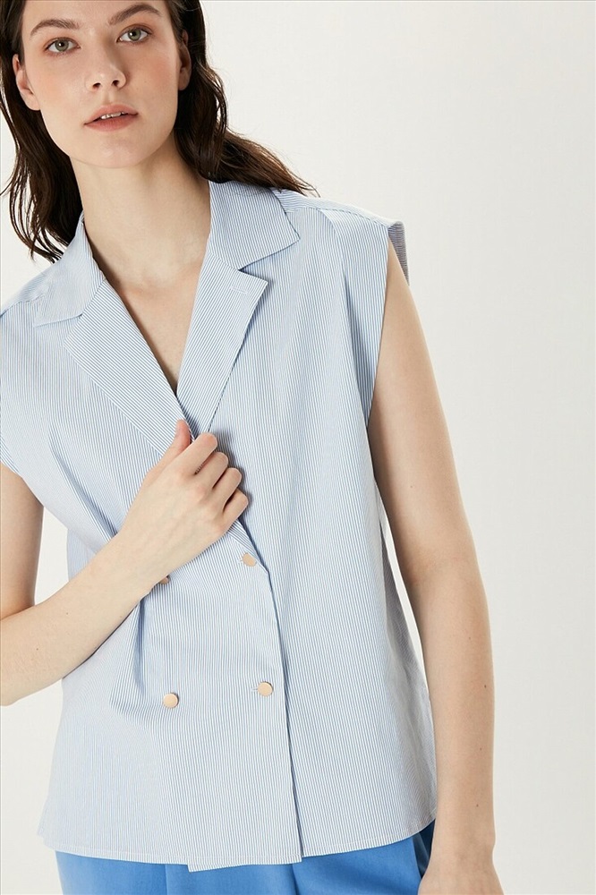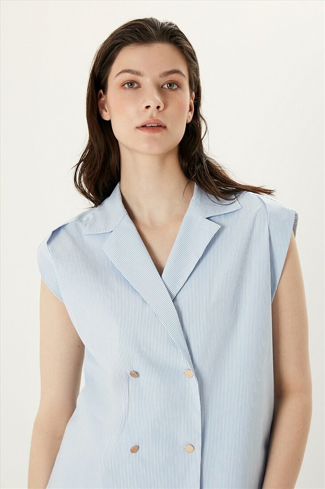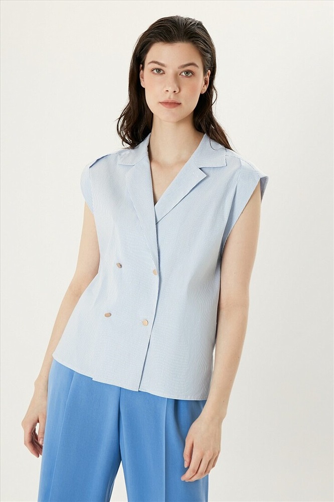 ID товара: 1094716 Состав: Хлопок 77%, Полиэстер 20%, Эластан 3% Сезон: Весна/Лето Длина: Средняя Фасон: Прямой Рукав: короткие Вид застежки: Пуговицы Вырез горловины: V-образный Основная ткань: Хлопок Стиль: Повседневный Страна бренда: Россия Страна производства: Россия Прямая двубортная блуза-рубашка с английским воротником и спущенным плечом. Хлопковая блузочная ткань в голубую полоску, золотые квадратные пуговицы. Модель выполнена в морском стиле. Комментарии к товару