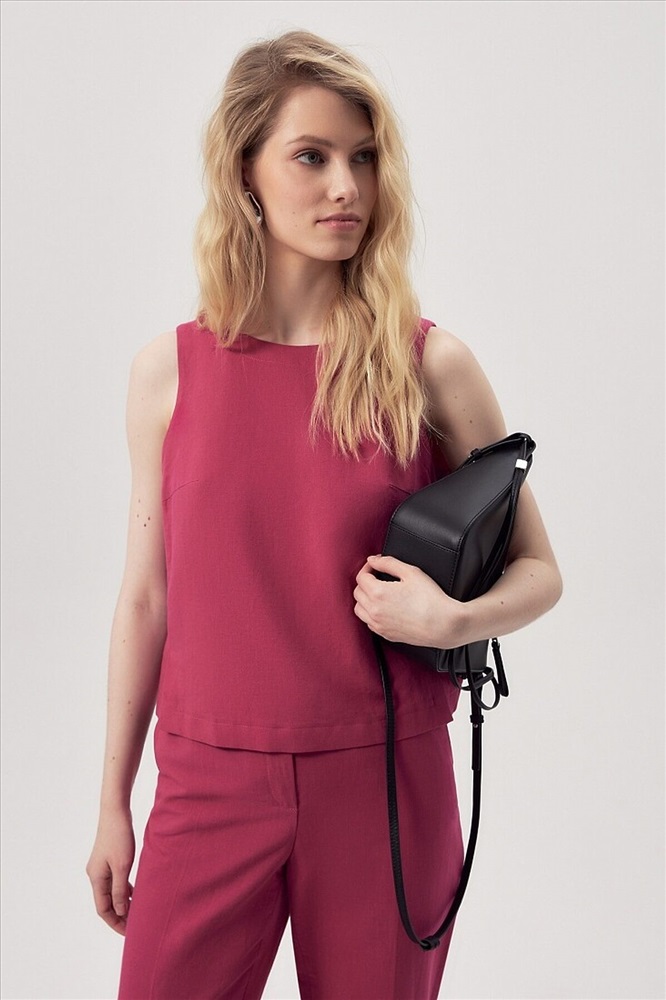 ID товара: 1094730 Состав: Лен 55%, Хлопок 45% Сезон: Весна/Лето Длина: Средняя Фасон: Свободный крой Рукав: без рукавов Вырез горловины: Округлый Рисунок: нет Основная ткань: Лен Стиль: Повседневный Страна бренда: Россия Страна производства: Россия Стильная прямая блуза из льняной ткани, выполнена в цвете цикламен. Спереди 2 небольших разреза из рельефов. Горловина и пройма на обтачках с широкой отстрочкой. На спинке капелька с пуговицей. Комментарии к товару