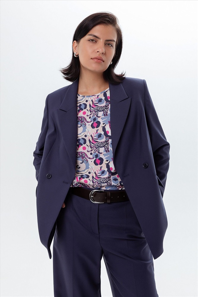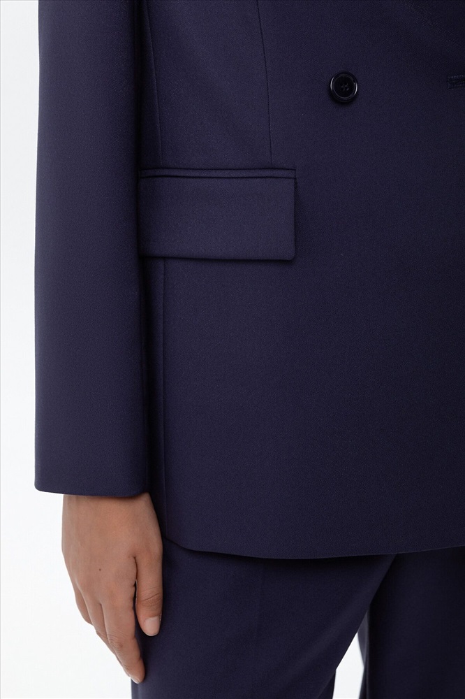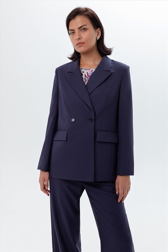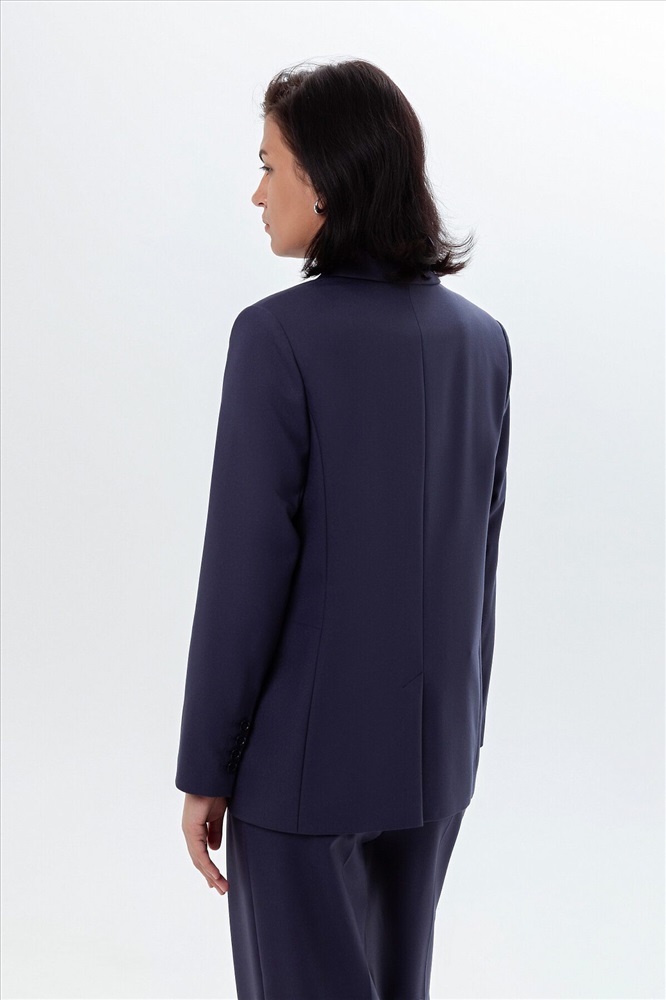 ID товара: 1126377 Состав: Основная ткань- Полиэстер 73%, Вискоза 24%, Эластан 3% Подкладка- Полиэстер 55%, Вискоза 45% Сезон: Демисезон Длина: Средняя Фасон: Прямой Рукав: Длинные Вид застежки: Пуговицы Вырез горловины: Округлый Основная ткань: Полиэстер Стиль: классический Страна бренда: Россия Страна производства: Россия Классический удлиненный прямой двубортный жакет из костюмной вискозной ткани в блогородном темно-синем цвете на двух пуговицах. Жакет полностью на подкладке, имеет прорезные карманы. Хорошо сочетается с брюками и юбками. Рукава полной длины. Стиль smart casual. Комментарии к товару