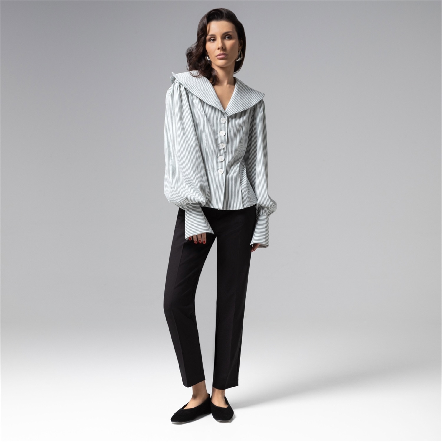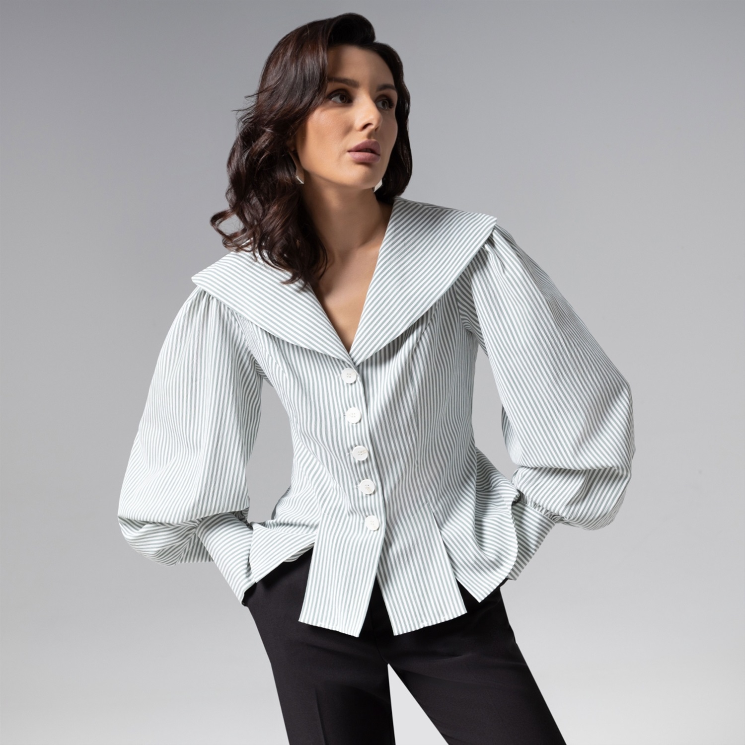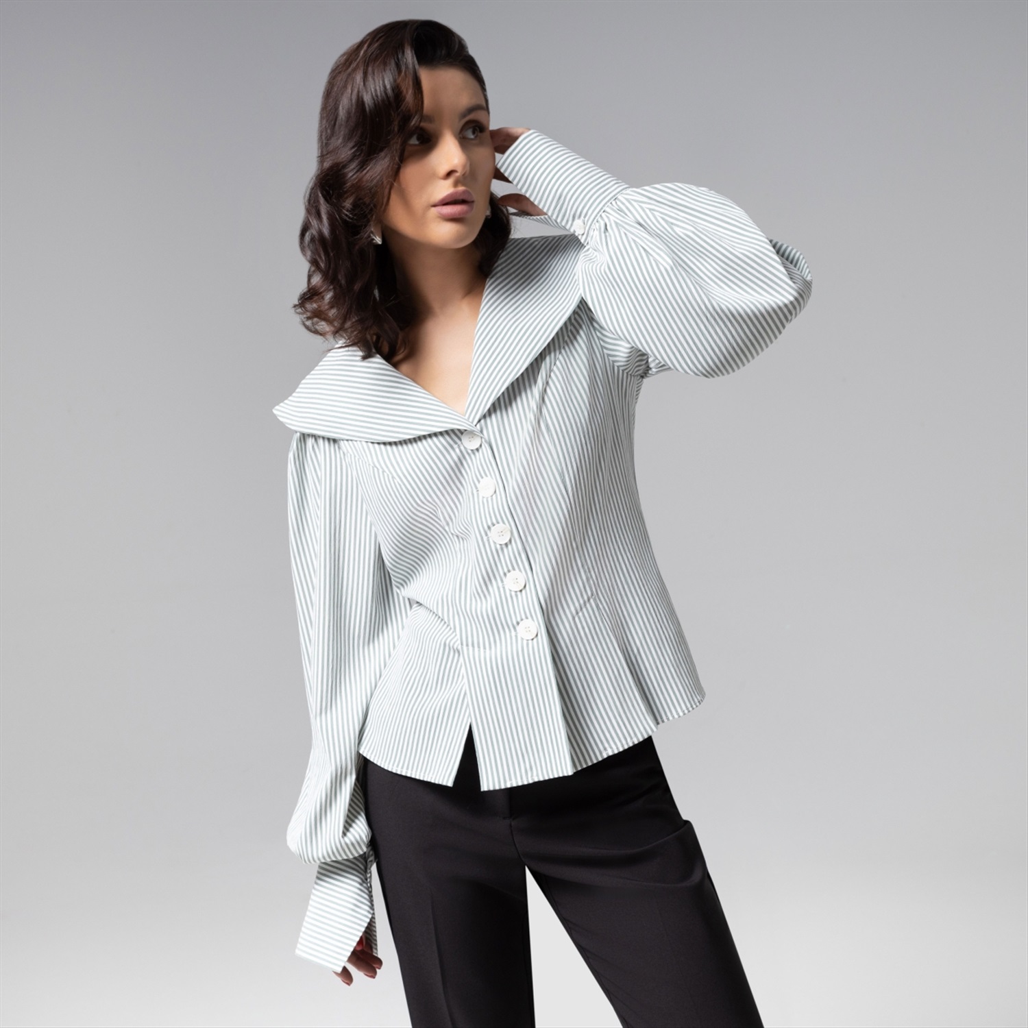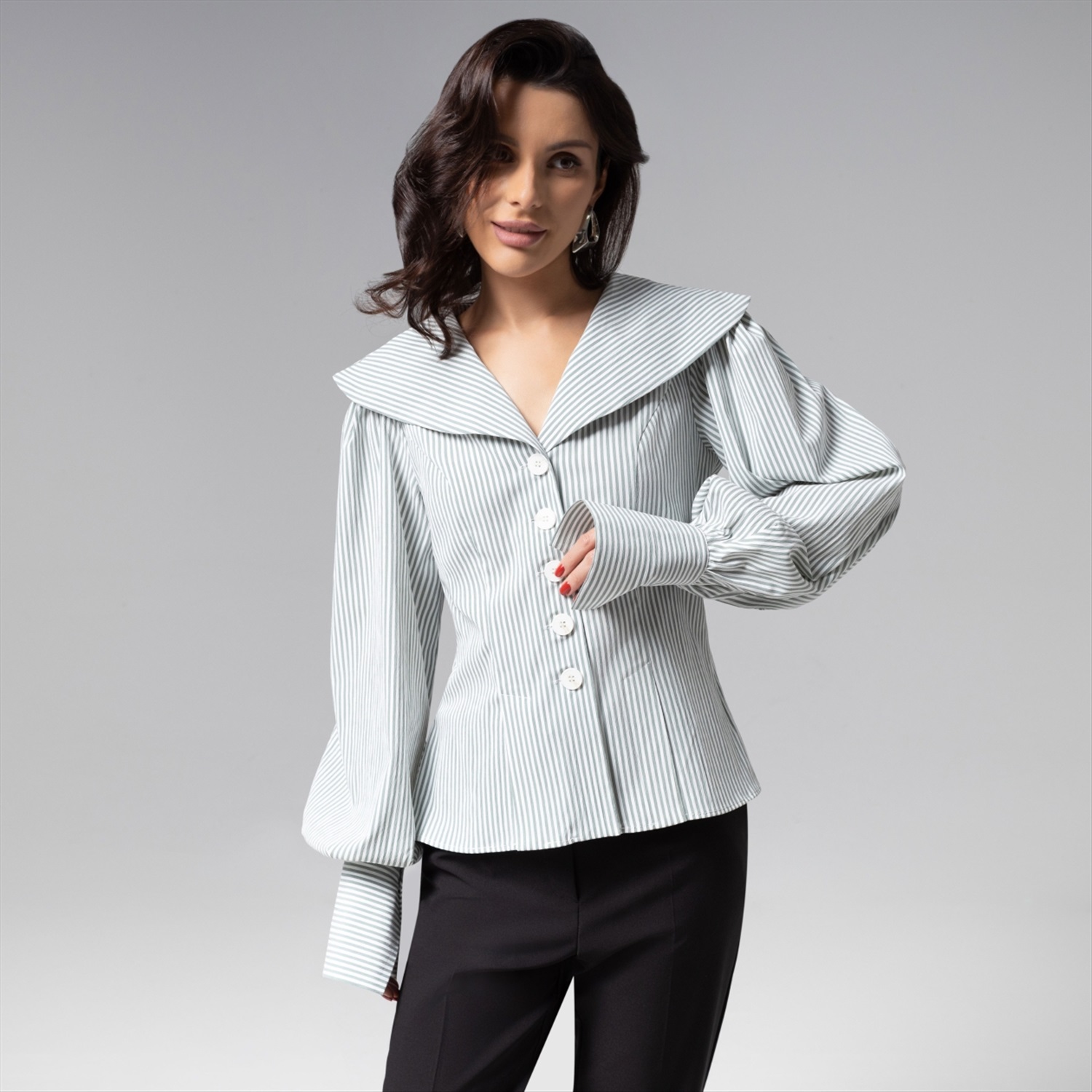 Изысканный приталенный силуэт блузы ЧАРУТТИ приковывает внимание. Широкий воротник, воздушные рукава изделия создают привлекательную игру контрастов. Изделие из премиального смыслового материала, который не потеряет своих свойств после многократных стирок. Безупречный пошив с идеальной посадкой по фигуре демонстрирует мастерство конструкторской мысли и внимание к каждой детали – от разрезов на подоле до оттенка пуговиц. Тонкая полоска на ткани придает образу утонченную глубину, делая блузу универсальным решением как для офиса, так и для светских выходов. Блуза коллекции PREMIUM – воплощение тихой роскоши, где сдержанность кроя встречается с безупречным чувством стиля. Комментарии к товару