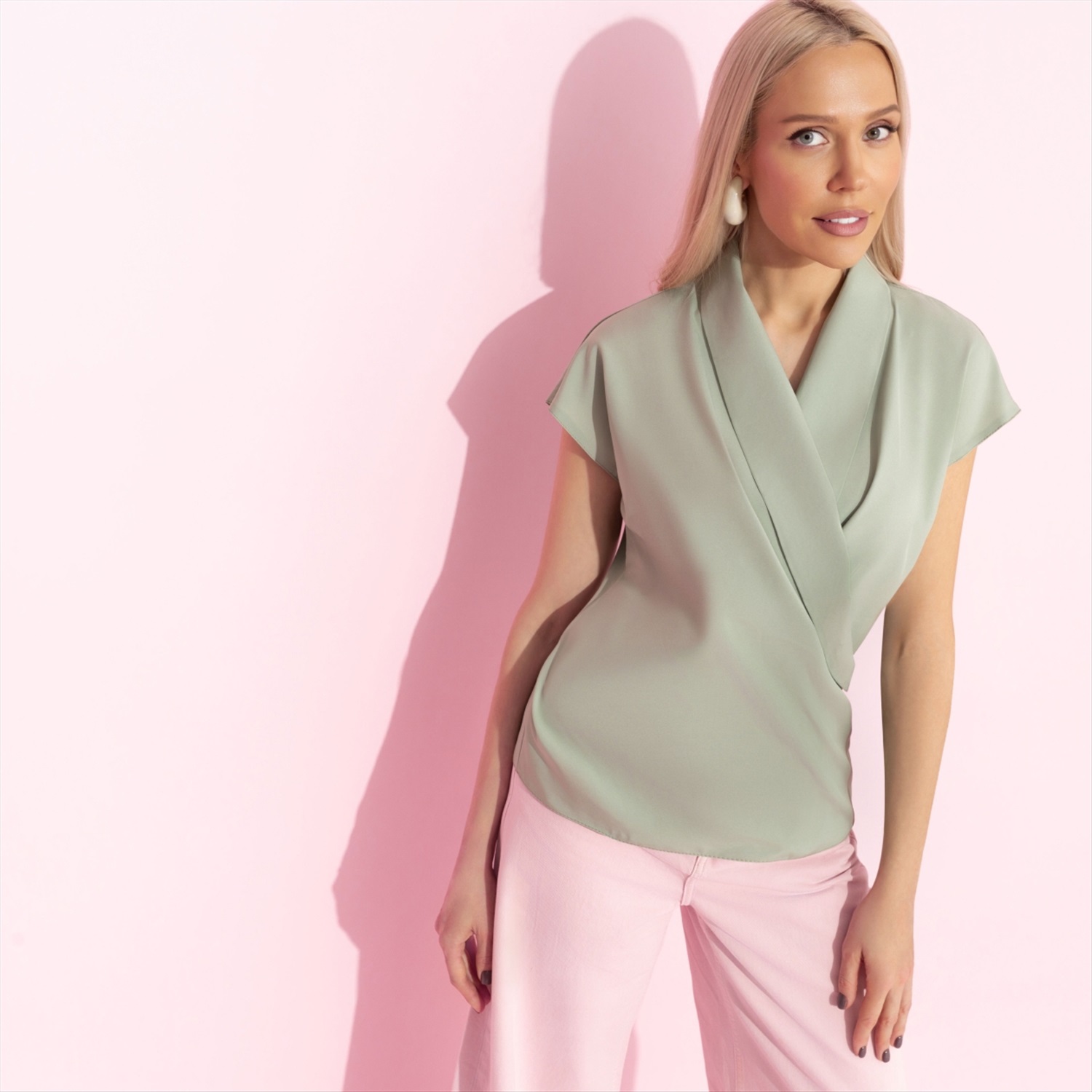 Блуза с драпировкой на запах, На пике изящества (зеленый)