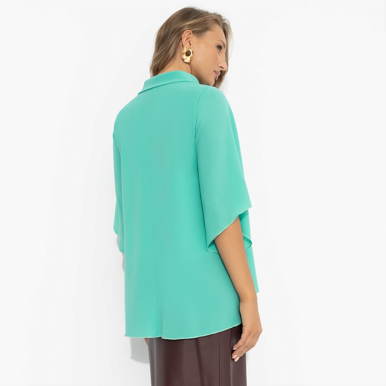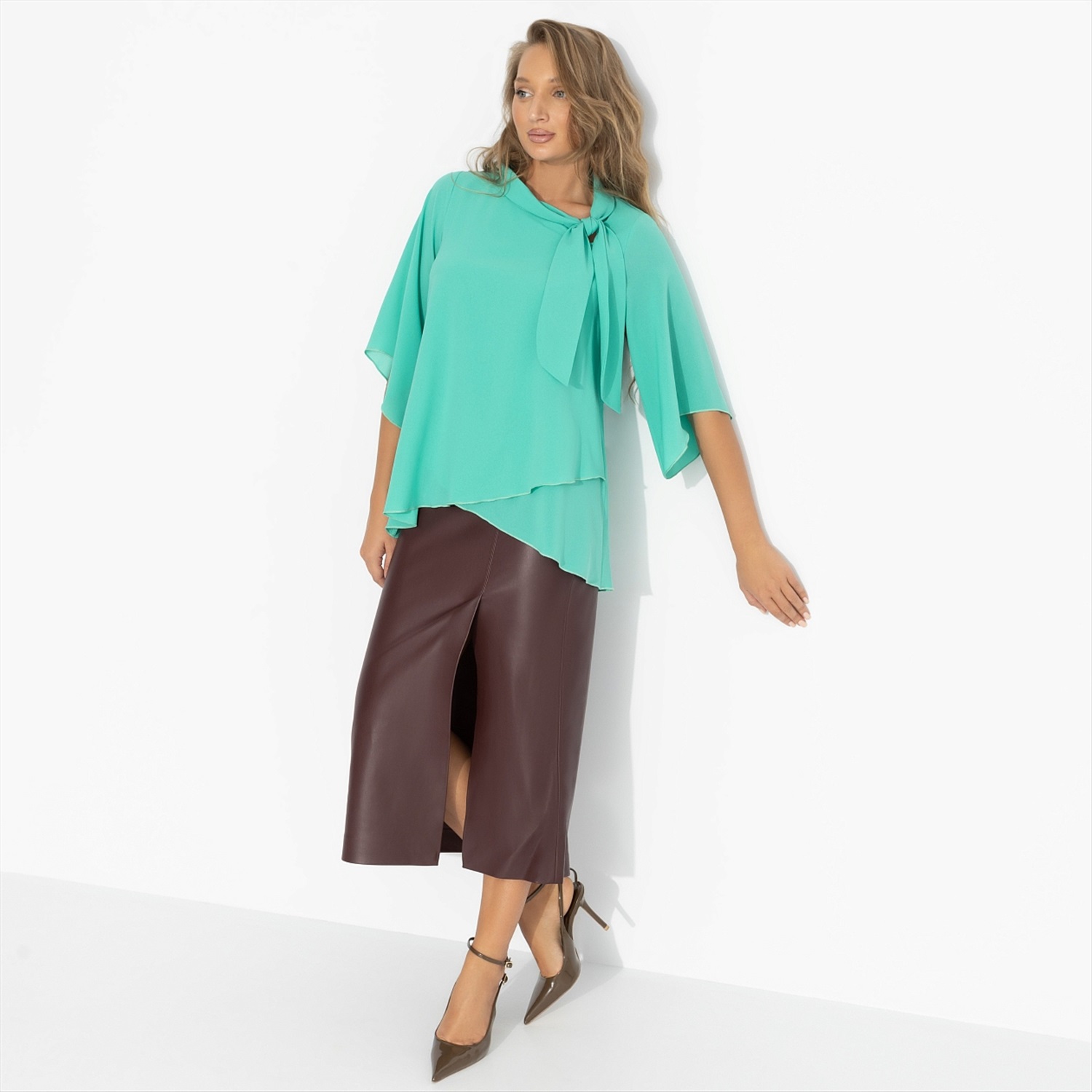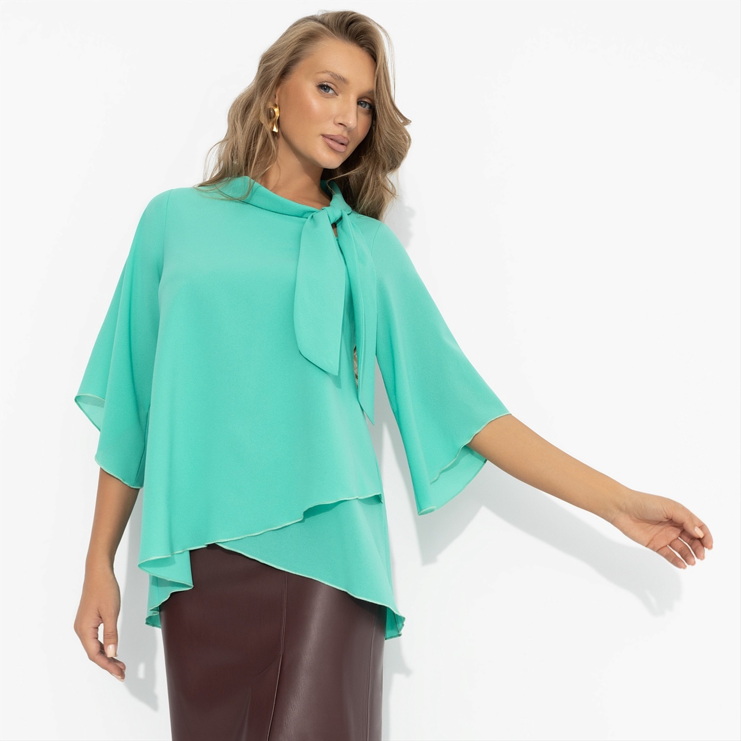 Мятная блуза оживляет образ, добавляет нотку весеннего ветра даже в самый будний день. Простая формула красоты – дышать, улыбаться, сиять. Блуза из лёгкого креп-шифона с асимметричным краем и завязкой у горловины. Воздушная ткань мягко струится по силуэту, создавая ощущение свободы и безупречного комфорта. Комментарии к товару