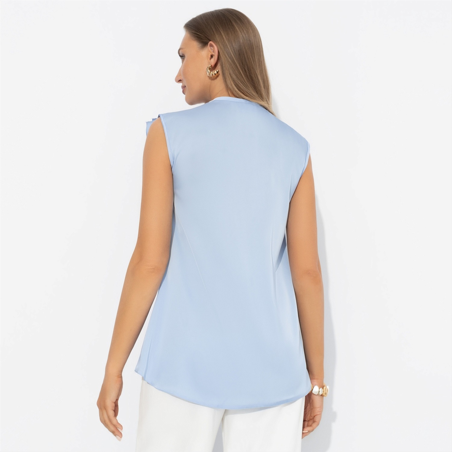 Модный гороскоп. Впервые в истории астрологии звезды и другие небесные объекты выстроились в отчетливо читаемое слово «Покупай». Если вы ждали знак, то эти новости для вас. Топ CHARUTTI в небесном оттенке долго задерживаться на полках не будет. Топ без рукавов. Объемные рюши по центральной части изделия. Свободная посадка изделия. Топ хорошо смотрится на любом типе фигуры.