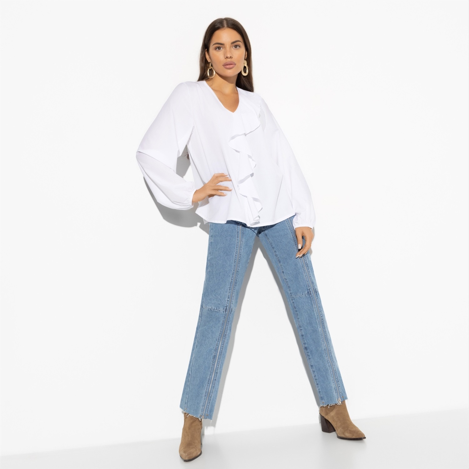 Бесконечно можно смотреть на три вещи – огонь, воду и белую блузу CHARUTTI. Чувственные воланы приковывают взгляд прохожих, погружая их в эстетическую медитацию. Гипнотически прекрасная вещь. Блуза свободного кроя. Объемный декор по передней части изделия. Длина блузы до линии бедра. V-образный вырез. Рукава оформлены тонкой резинкой. Откройте для себя элегантность и изысканность, покупая оптом стильную блузу с воланом «Стильный триумф». Эта блуза станет настоящей жемчужиной вашего гардероба и подарит вам незабываемые моменты. Изготовленная из высококачественной ткани «ниагара», она обеспечивает комфорт и легкость в носке, а чувственные воланы привлекают внимание, заставляя окружающих замирать в восторге. Свободный крой и объемный декор создают уникальный образ, который подчеркнет вашу индивидуальность и утонченность. Покупая оптом, вы получаете не только выгодные условия, но и возможность делиться этим модным шедевром с близкими и друзьями. Блуза «Стильный триумф» — это не просто одежда, это ваше личное заявление о стиле и вкусе. V-образный вырез изящно подчеркивает линию шеи, добавляя образу легкость и женственность. Тонкая резинка на рукавах создает изящный силуэт, обеспечивая при этом комфорт и свободу движений. Длина до линии бедра делает эту блузу универсальной — она идеально сочетается как с классическими брюками, так и с джинсами. Приобретая её оптом, вы получаете возможность радовать себя и других этим безупречным аксессуаром, который станет достойным дополнением любого модного образа. Покупка оптом блузы с воланом «Стильный триумф» — это ваш шаг к созданию уникального гардероба, который будет вдохновлять и удивлять. Вложение в качество и стиль всегда оправдано, ведь эта блуза — это гипнотически прекрасный элемент одежды, который будет радовать вас долгое время. Она станет неотъемлемой частью вашего повседневного и праздничного образа, придавая ему нотку утонченности и шарма. Не упустите возможность стать обладателем этой великолепной вещи, которая подчеркнет вашу индивидуальность и выделит вас среди окружающих. Комментарии к товару