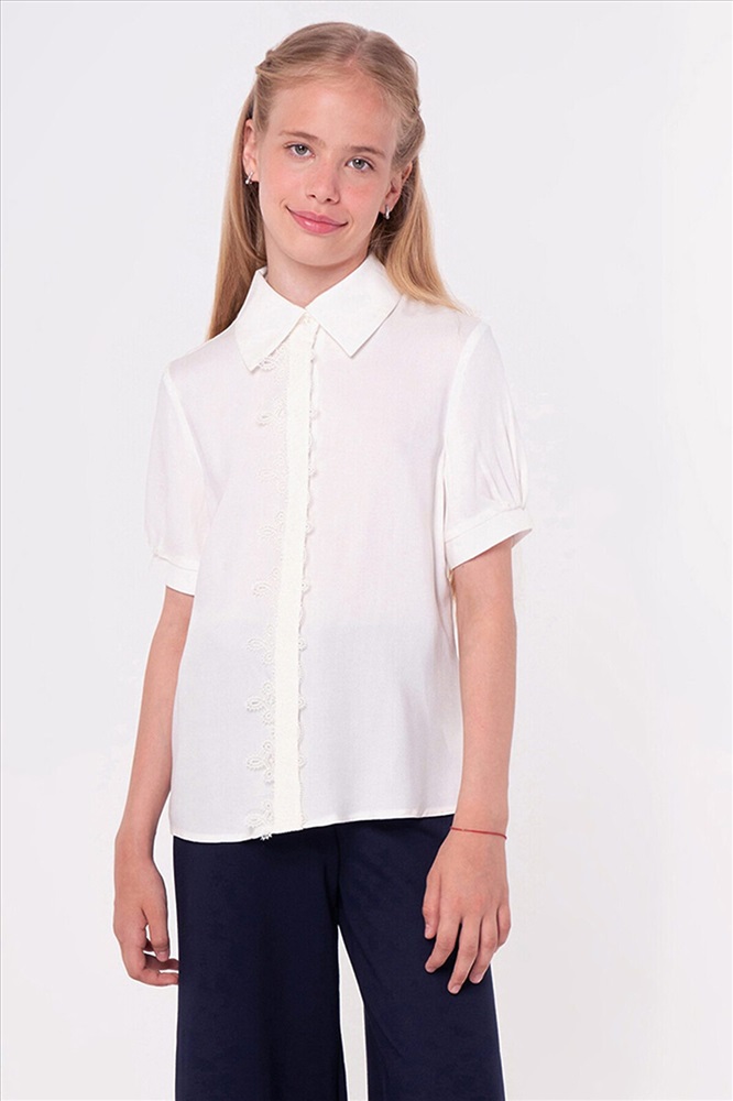 ID товара: 1129243 Акции: -5%, до 24.11.2025 Состав: 100% Вискоза Сезон: Демисезон Длина: Средняя Фасон: Полуприлегающий Рукав: Короткие Вид застежки: Пуговицы Вырез горловины: Отложной воротничок Основная ткань: Вискоза Стиль: классический Страна бренда: Россия Страна производства: Россия Романтичная блузка из вискозы полуприлегающего силуэта с кружевным воротником и ажурным кружевом по переду изделия. Блузку дополняют объемные короткие рукава со встречными складками и манжетом. Застежка центральная на планку с пуговицами. Отличный вариант на каждый день. Комментарии к товару
